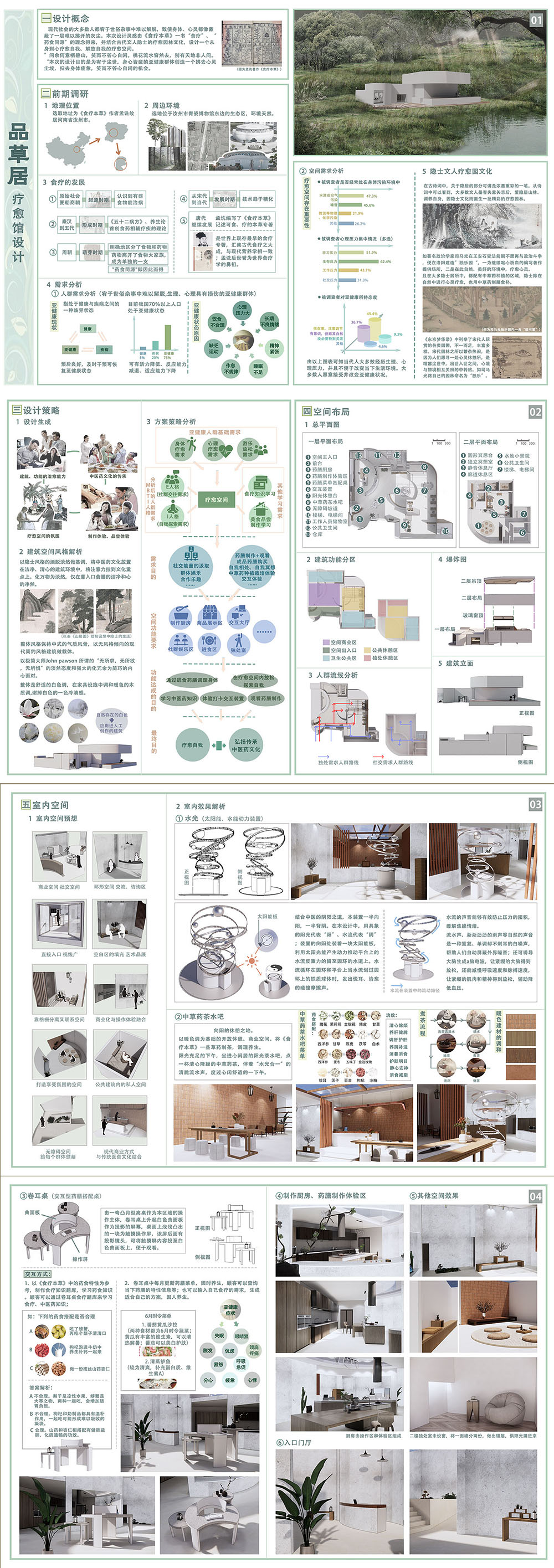 省赛阶段,湖北工业大学艺术设计学院共有十多组作品荣获等级奖。7--8月,大赛分别在上海、济南、沈阳、南京、厦门、杭州决赛区进行了不同赛道的决赛,各赛区参赛高校均400余所,竞争激烈。由陈林星、张葳老师指导,赵雨涵同学的作品《品草居-疗愈馆设计》斩获国赛二等奖,有3组作品荣获国赛三等奖。