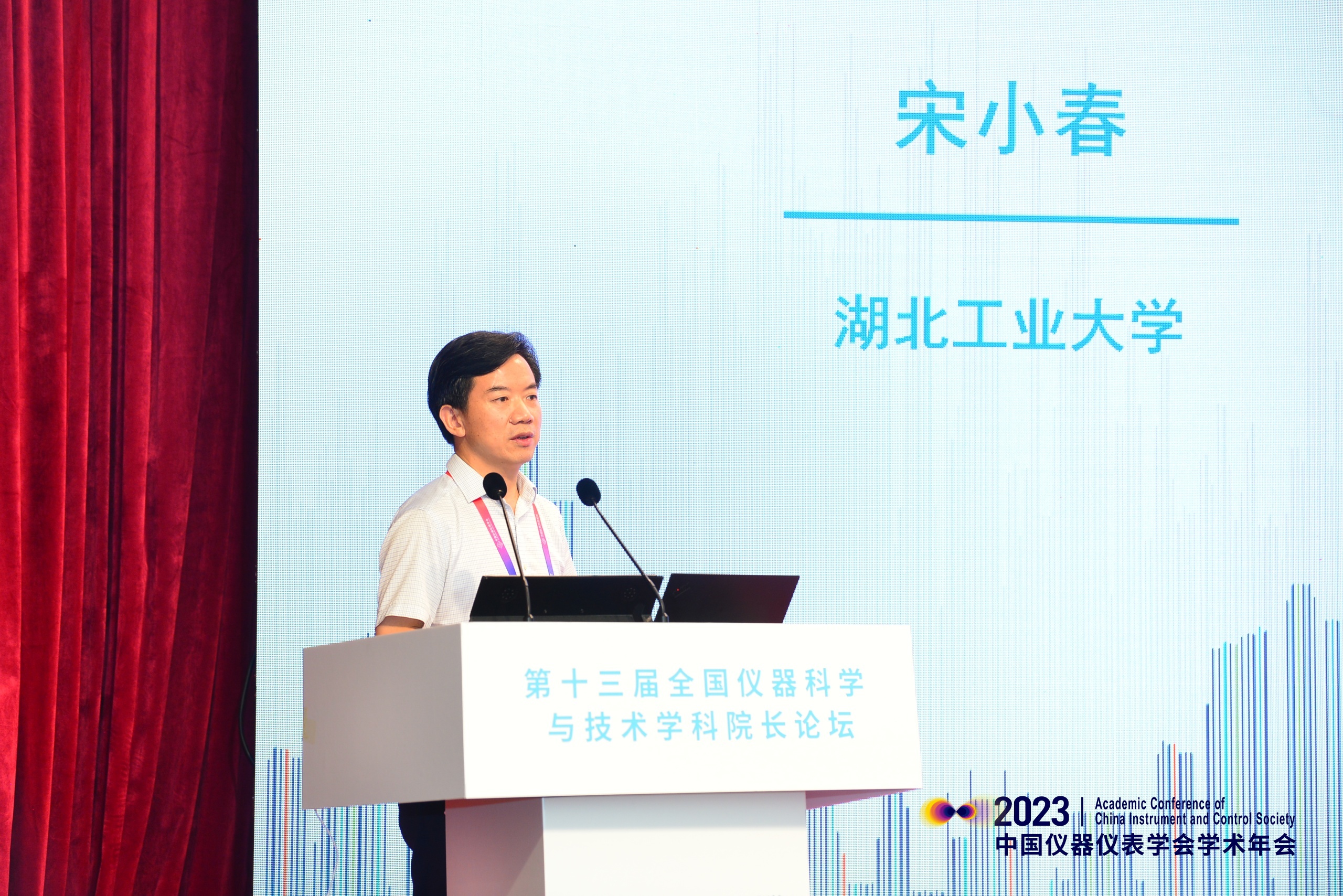 中国仪器仪表学会副理事长、中国工程院院士尤政致开幕辞。中国工程院院士叶升华、中国工程院院士周立伟、中国工程院院士尤政、中国工程院院士谭久彬、中国工程院院士王巍、中国工程院院士林君、哈尔滨工业大学副校长刘挺、中国仪器仪表学会名誉理事长吴幼华、中国计量科学研究院院长方向等嘉宾出席大会开幕式。我校党委常委,副校长、仪器学科带头人宋小春教授带领仪器学科教师代表参加了此次大会,并以《“多方协同,产教融合”地方院校专业学位人才培养模式改革与实践》为题作了大会主题报告,从专业学位研究生培养的重要性、我校的师资队伍和平台建设、改革思路与举措、仪器类专硕培养实践等方面介绍了我校仪器学科建设概况与人才培养的改革与成效。
