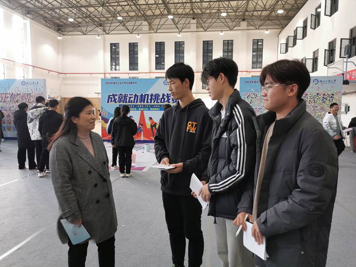 校党委副书记胡晓艳来到嘉年华现场和参与活动的师生、志愿者们亲切交流。胡晓艳充分肯定了本次活动举办的意义,她鼓励同学们认真上好这堂实践课,积极通过探索体验,明确自我生涯定位,为大学四年与为未来人生发展做好规划。