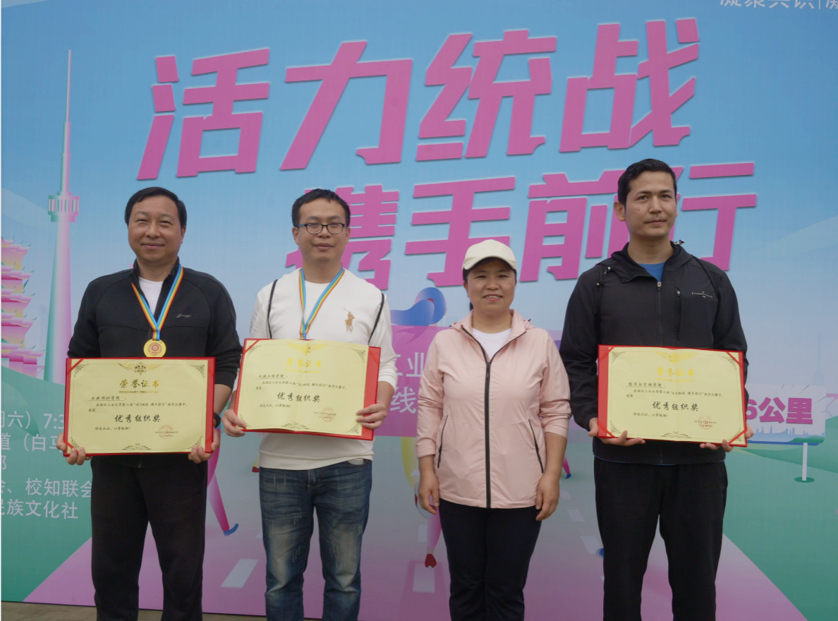 比赛终点,胡晓艳和相关学院、各民主党派和统战团体的负责人一起为完赛师生、优秀组织单位颁发荣誉证书、纪念奖牌,并合影留念。