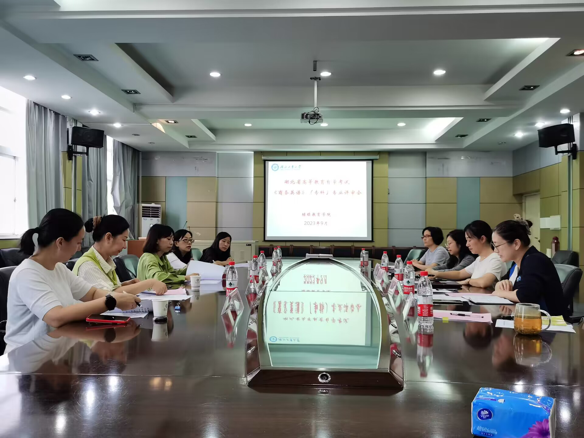 根据湖北省教育考试院有关工作安排,9月21日上午,我校作为高等教育自学考试专业计划调整任务的承接高校,在继续教育学院四楼会议室顺利组织了湖北省高等教育自学考试《商务英语》(专科)专业评审会。湖北省教育考试院自考办领导、继续教育学院领导及相关工作人员、外国语学院专业建设教师代表及3位特邀评审专家参加了会议。