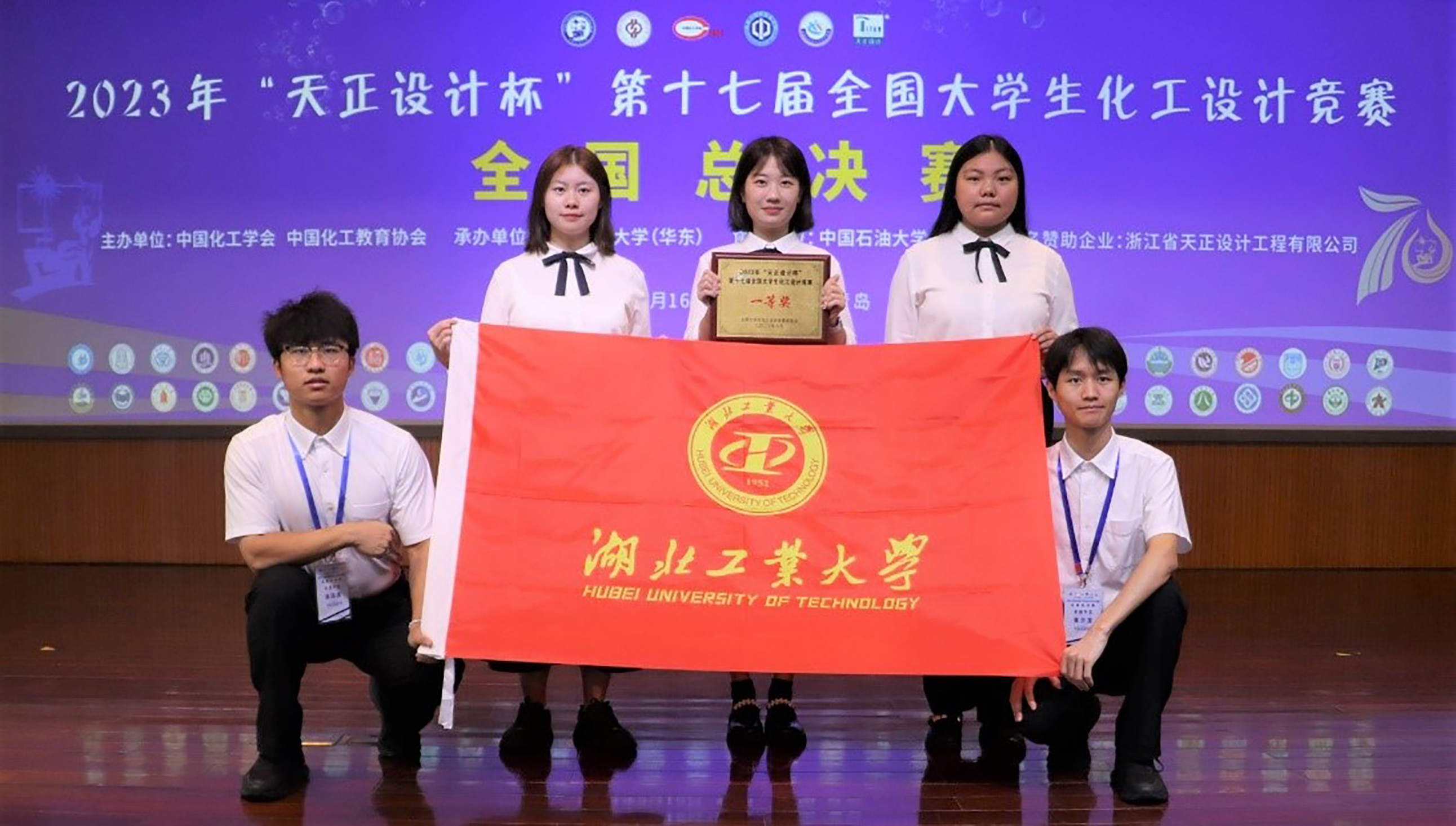 8月22日,第十七届全国大学生化工设计竞赛全国总决赛在中国石油大学(华东)圆满落幕。全国各赛区推荐的60支队伍同台竞技,由我校材料与化学工程学院21级化工专业学生赵逸阳、何心雨、蔡亭羽、黄京龙、谢瑞涛组成的“春和腈明”团队完成的作品“天辰齐翔4.5万吨/年己二腈生产项目”荣获全国一等奖。