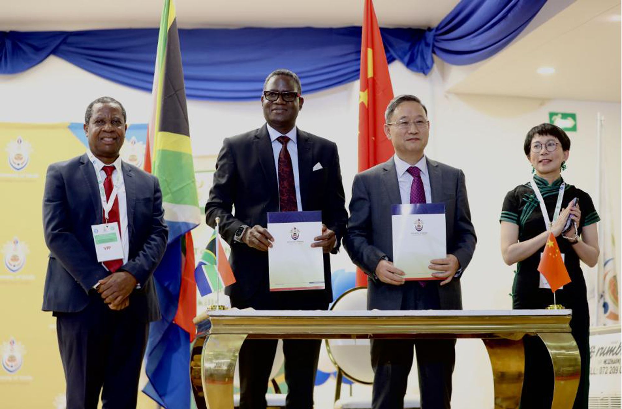 揭牌仪式现场,湖北工业大学与文达大学签署共建中非青年创新创业示范基地合作备忘录、本科生2+2联合培养项目合作协议及博士生2+2联合培养项目合作协议。