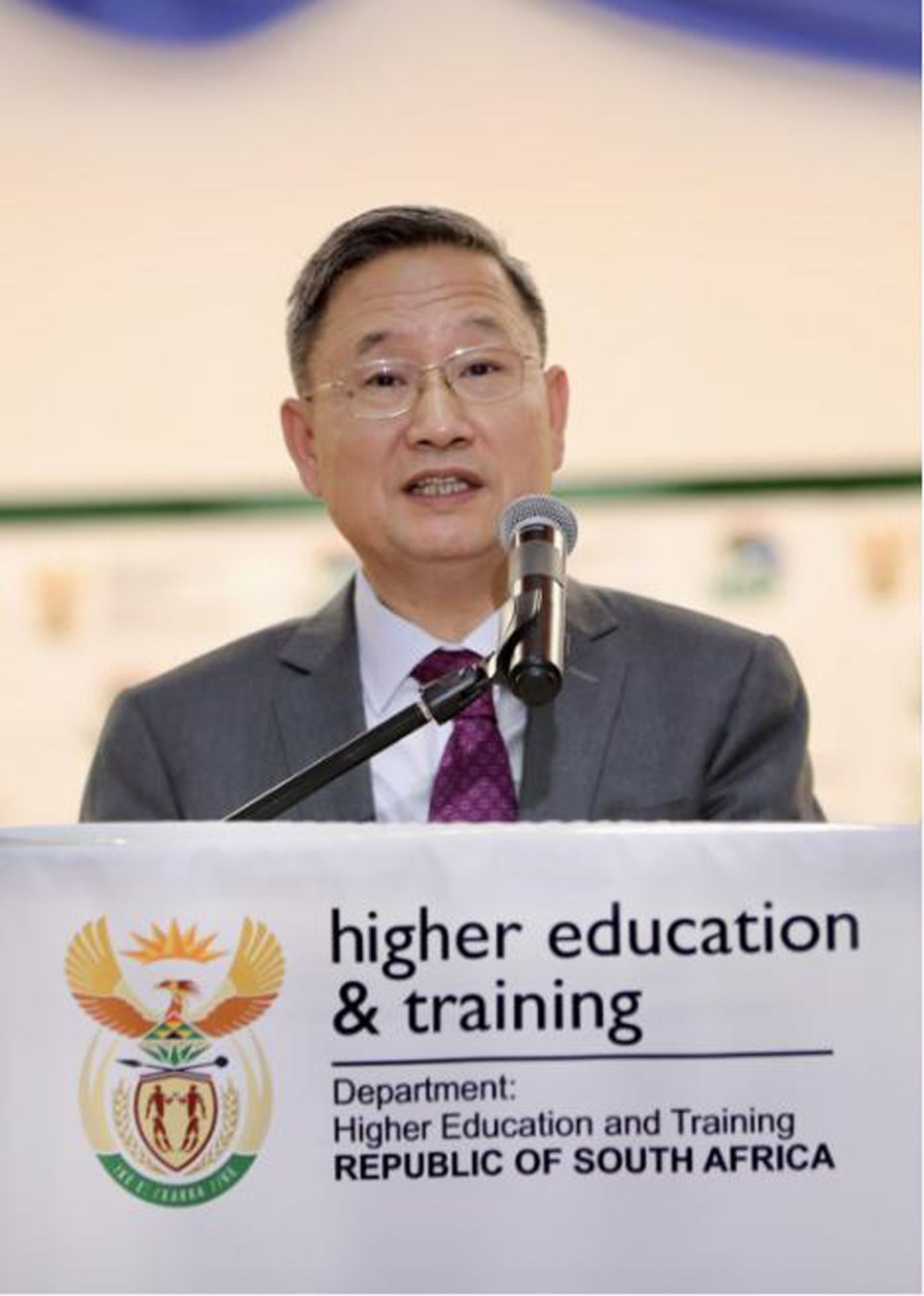 中国驻南非特命全权大使陈晓东、南非高教科创部部长恩兹曼德、中国国际中文教育基金会秘书长赵灵山通过视频致辞,对孔子学院揭牌表示热烈祝贺。