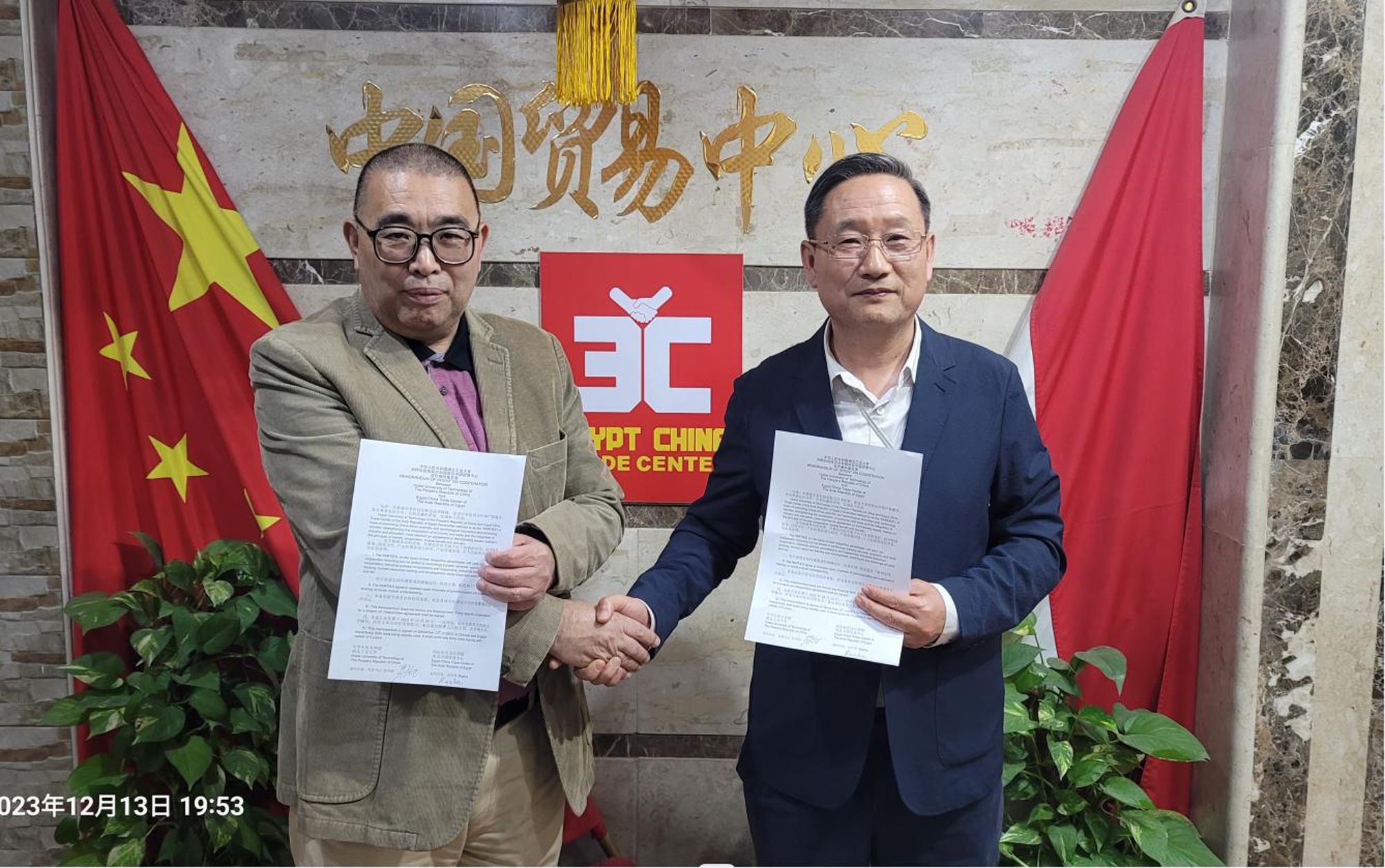 12月13日下午,代表团访问了埃及中国贸易中心,并与埃中贸易中心董事长王培中签署合作备忘录。