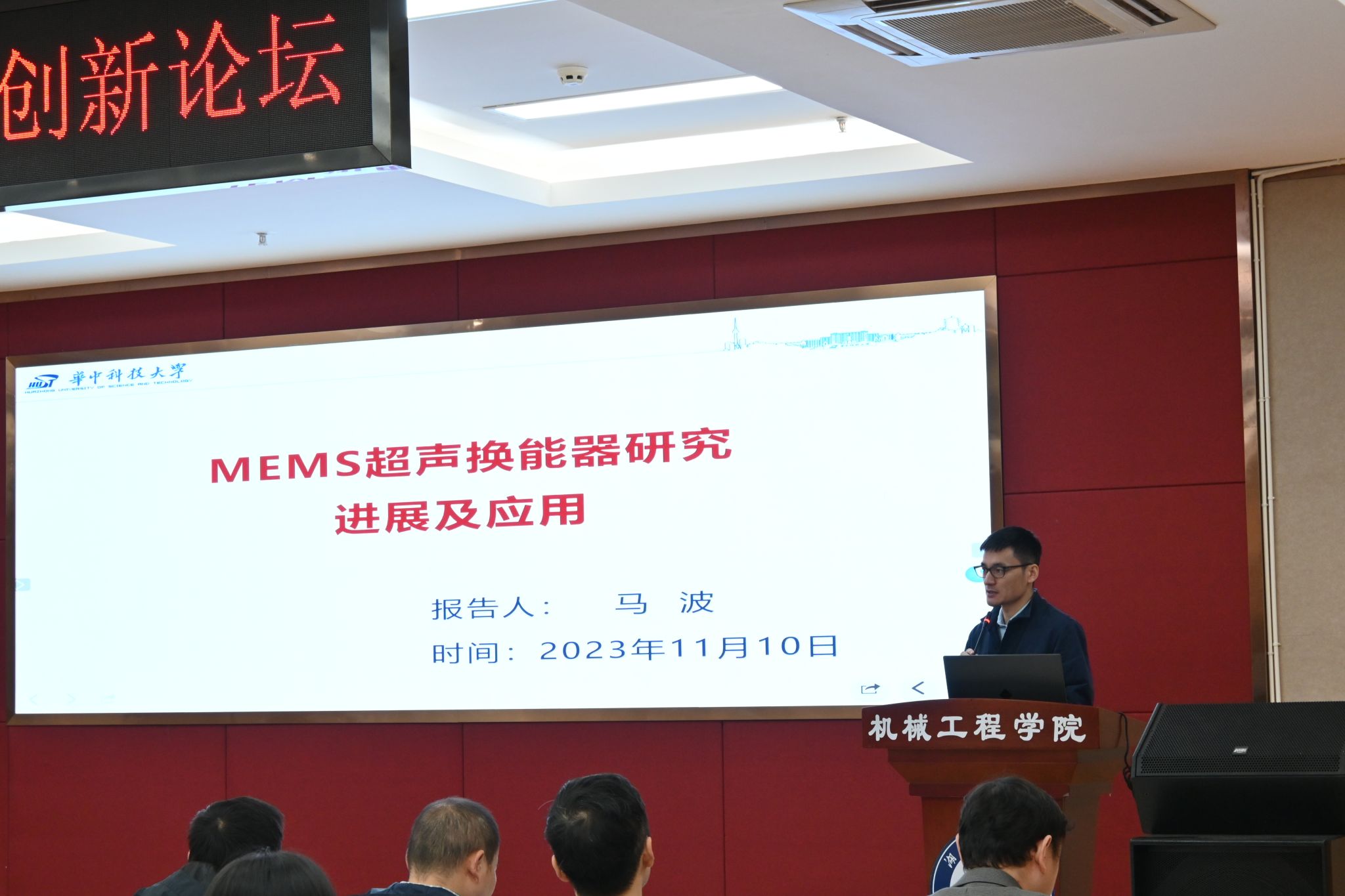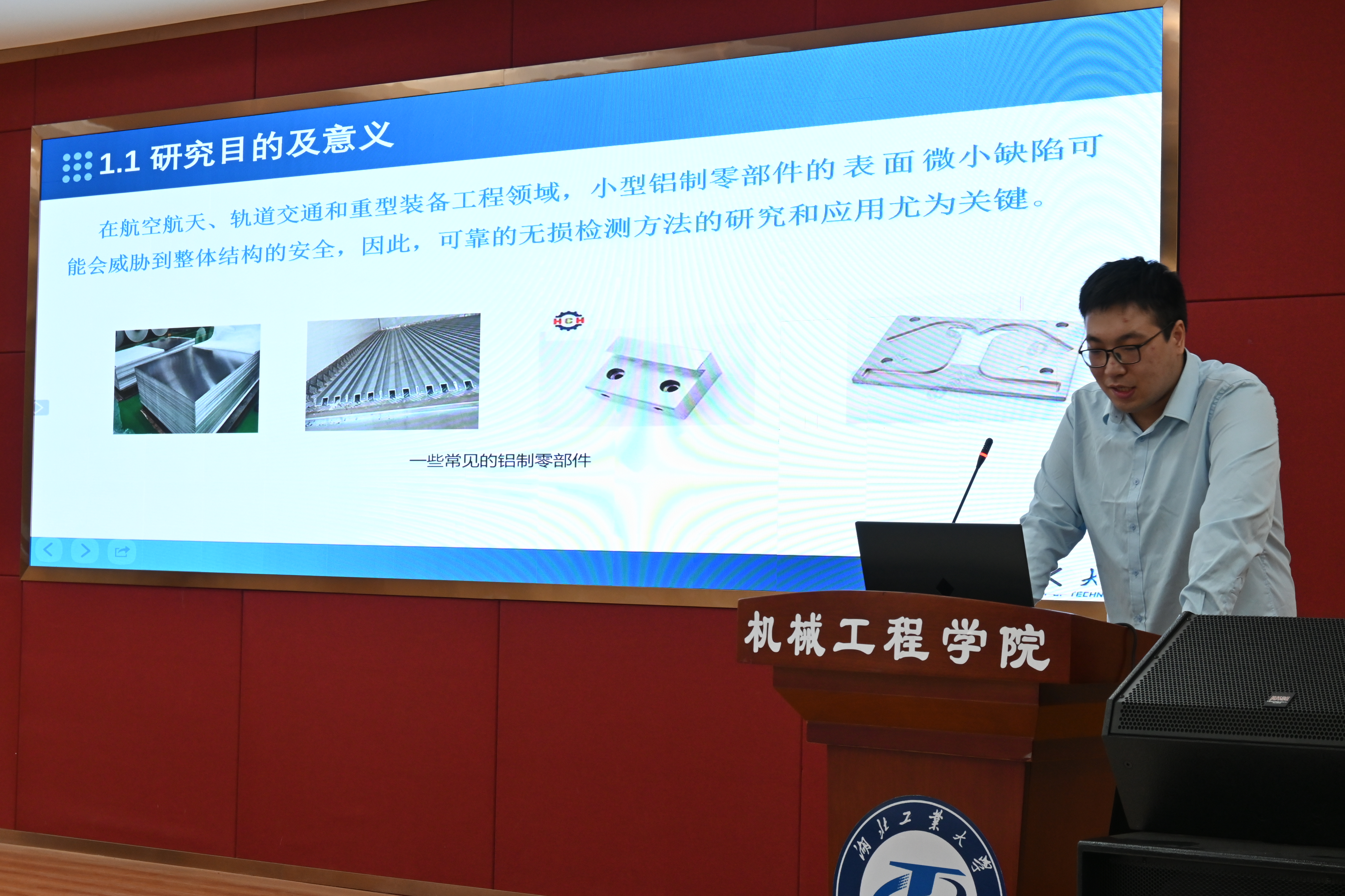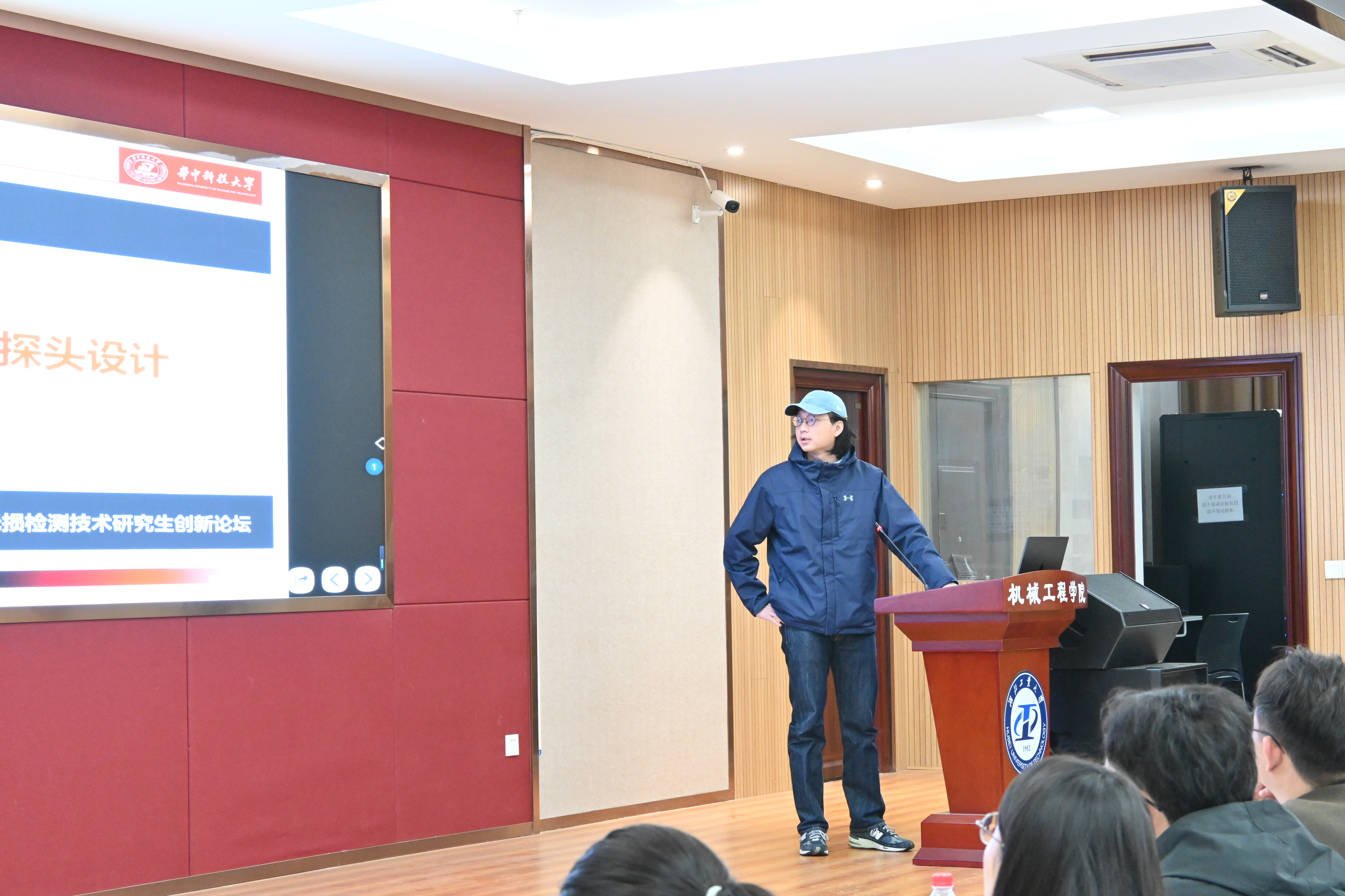 论坛主旨报告环节由机械工程学院副院长、湖北·武汉无损检测学会秘书长聂磊教授主持,华中科技大学机械科学与工程学院马波教授、华中农业大学工学院刘世伟副教授分别作“MEMS超声换能器研究进展及其应用”、“电磁无损检测/评估研究及其应用进展”两项主旨报告。随后,来自华中科技大学、华中农业大学、武汉理工大学、湖北工业大学的7名研究生代表分别从磁粉三维立体显影与定量化识别、刀片式脉冲涡流探头、光纤非侵入监测、电磁表征农工交叉无损检测、生菜理化指标高光谱无损检测、单向点聚焦表面波电磁超声检测、宽带匹配主动聚焦超声换能器等最新研究进展分享了学术成果。