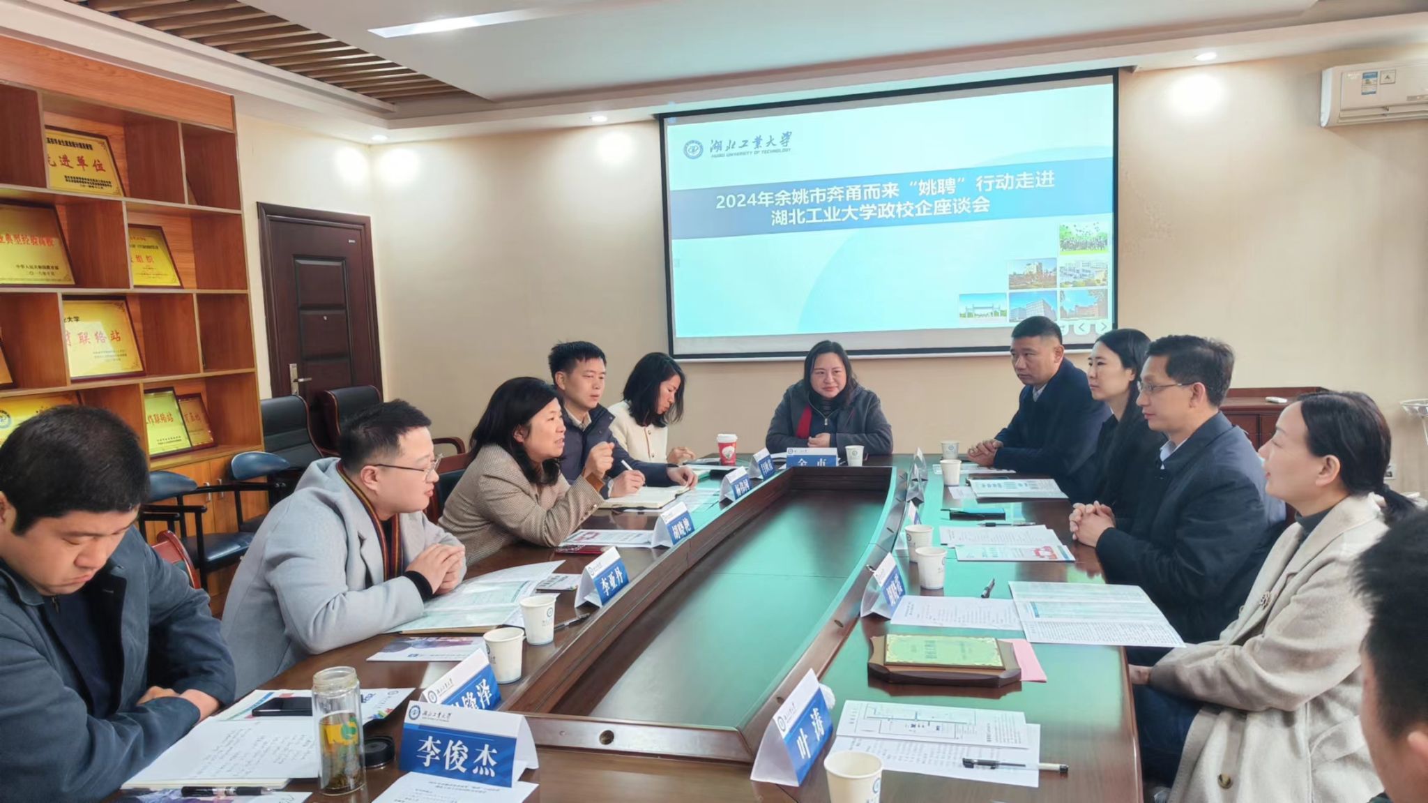 胡晓艳对余姚人社系统和企业表示欢迎,对其关心支持学校发展和毕业生就业表示感谢,介绍了我校基本情况,并希望双方能在人才培养、科学研究和社会服务等方面深化合作。王明江从文化底蕴、城市现状、未来发展和招才引智政策等方面对余姚进行推介,他表示,余姚产业结构和人才需求与我校学科专业设置高度契合,此行求贤若渴,希望通过建立招引工作站和大学生实习实践基地,形成深入合作长效机制,吸引湖工大更多优秀人才就业余姚。
