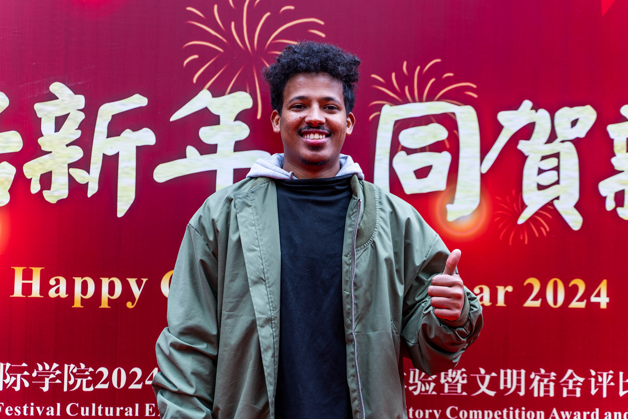 国际学生联合会主席,埃塞俄比亚籍国际学生伯尼说:“此次春节文化活动热闹非凡,我们每个人都从中感受到了浓厚的中国春节氛围。我代表国际学生感谢学校对我们的关怀。”