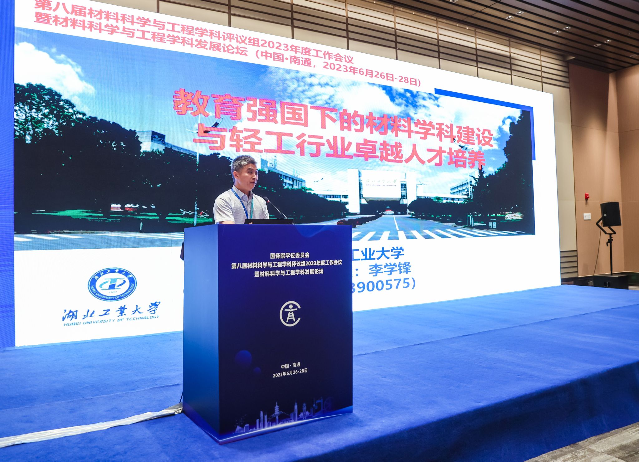 6月27日上午,国务院学位委员会第八届材料科学与工程学科评议组2023年度工作会议暨材料科学与工程学科发展论坛在江苏省南通市南通国际会议中心召开,湖北工业大学作为湖北省属学校唯一代表在大会上作报告。