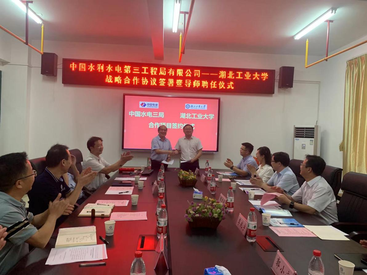 受副校长陈自才委托,胡心彬对李东锋一行表示热烈欢迎,对水电三局在面向国家重大战略需求中取得的巨大成就表示赞赏。他表示学校坚持以“立足湖北、服务工业”的办学定位,实施以绿色工业为主导的“135+”学科发展战略引领学校快速发展。学校“学科建设接地气、科技成果接地气、专家教授接地气”,在服务湖北企业、支撑产业发展取得了明显成效,希望以此次签约为契机,把学校人才优势、智力优势转化为服务优势,加快科技成果转化,促进产学研深度合作,不断拓展合作领域,实现校企互补双赢。