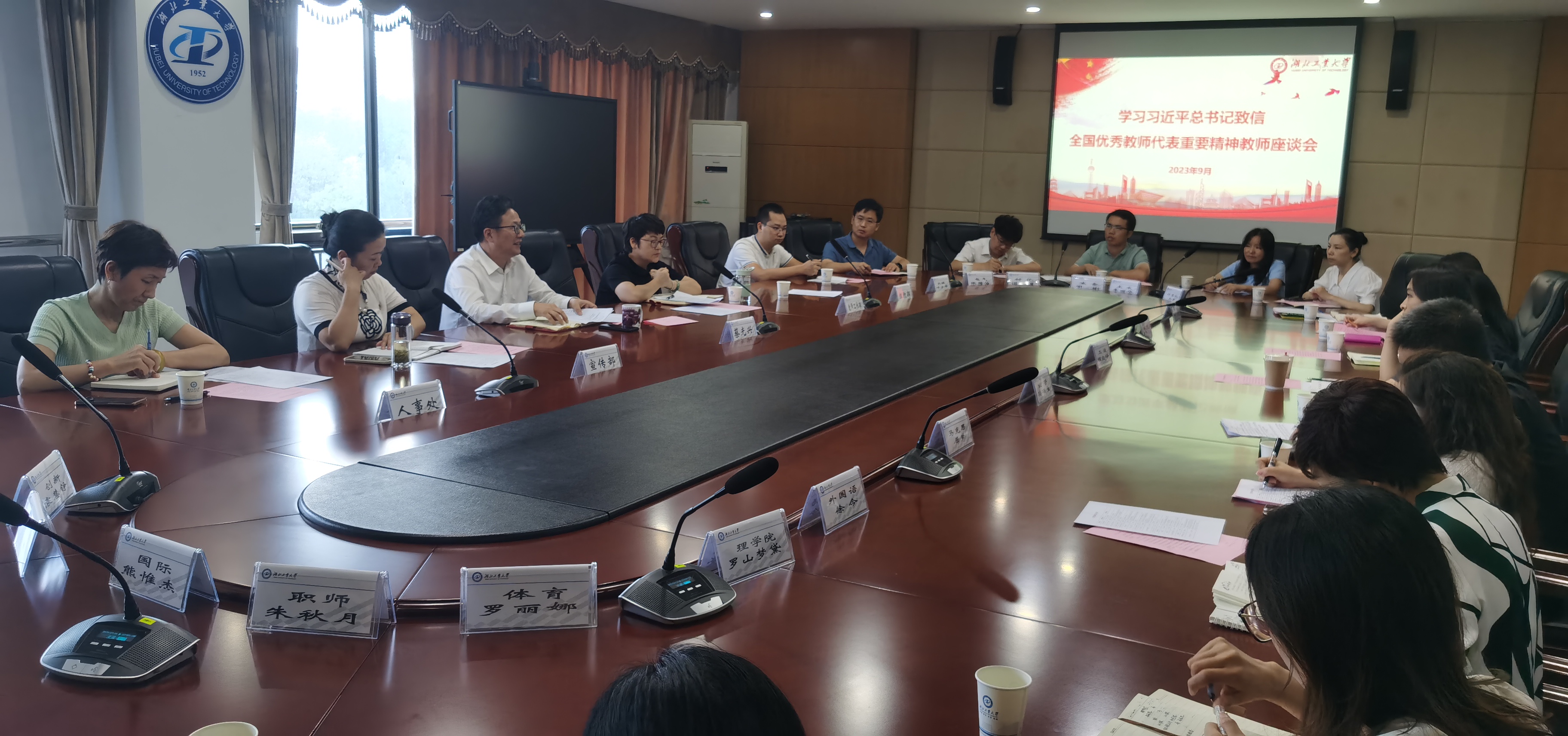 9月9日,在第39个教师节前夕,中共中央总书记、国家主席、中央军委主席习近平致信全国优秀教师代表,向他们和全国广大教师及教育工作者致以节日问候和诚挚祝福,就牢记使命、潜心育人提出殷切希望和明确要求。9月15日下午,学校召开学习习近平总书记致信全国优秀教师代表重要精神座谈会,校党委副书记蔡光兴出席会议并讲话,党委教师工作部部长徐妹主持会议,来自全校18个教学单位的优秀教师代表参加座谈会。