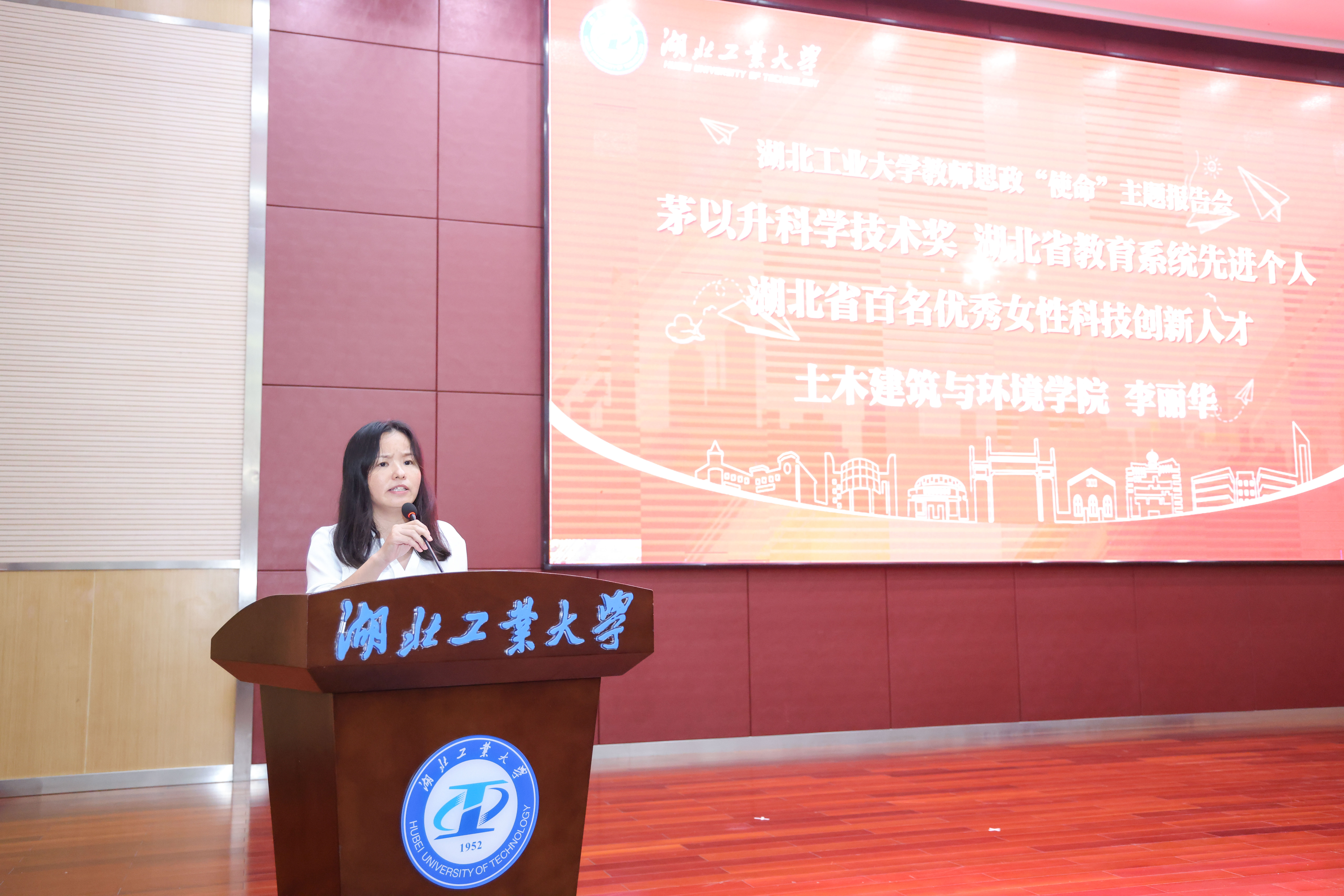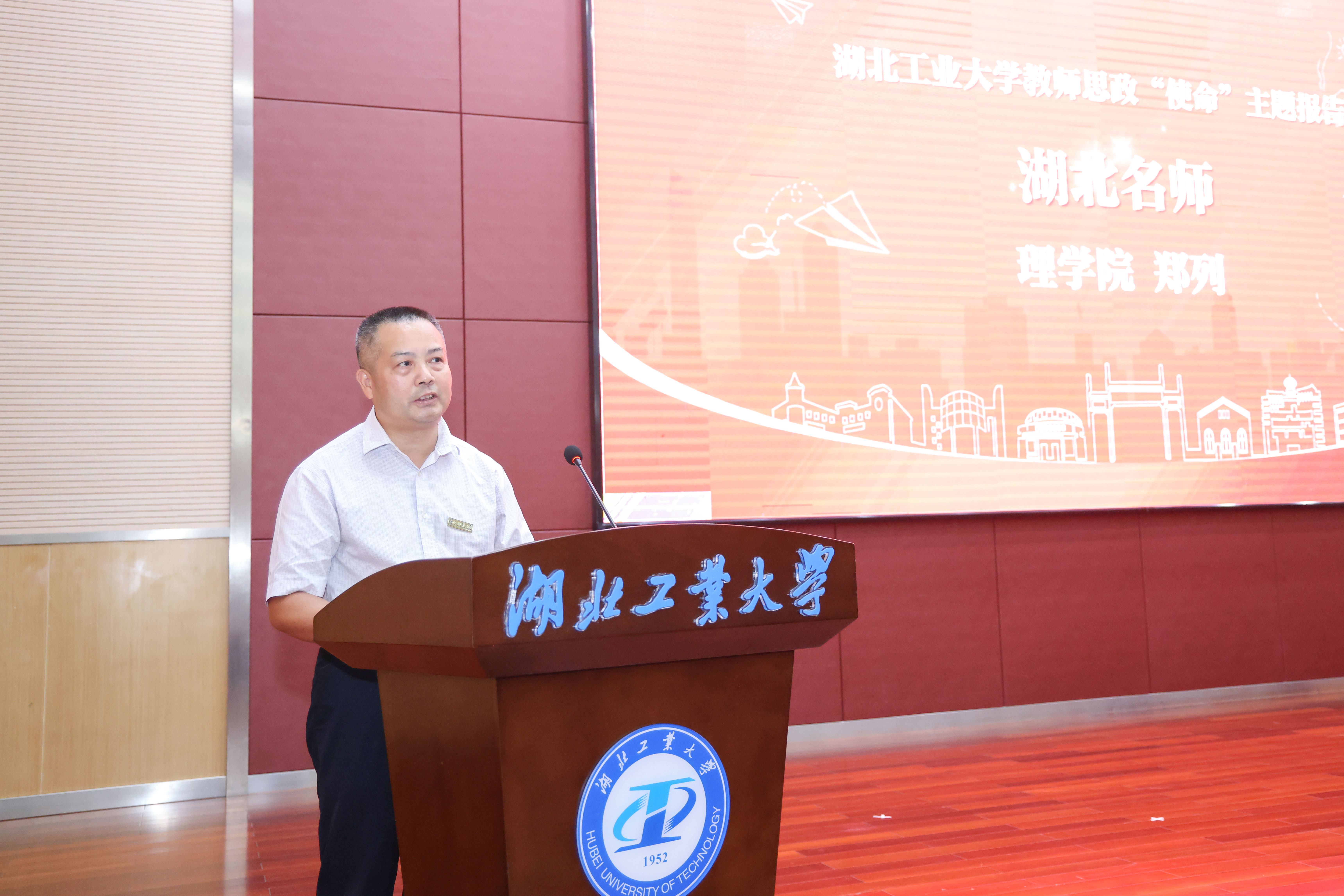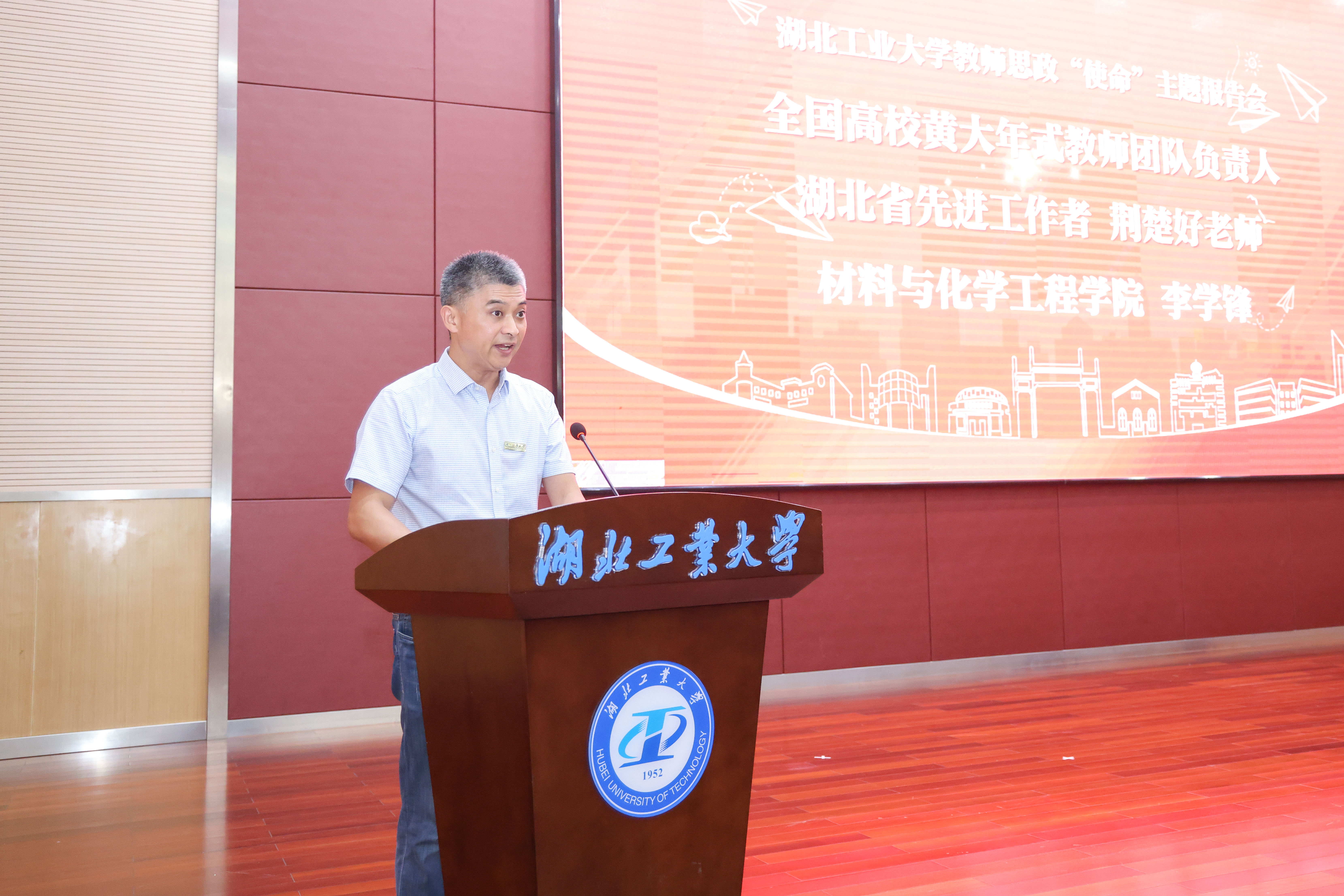湖北名师、理学院郑列教授;全国高校黄大年式教师团队负责人、湖北省先进工作者李学锋教授;省教育系统先进个人、省百名优秀女性科技创新人才、土木建筑与环境学学院李丽华教授分别作教师思政“使命”主题报告,分享他们在教学、科研、社会服务方面的宝贵经验和感人故事。