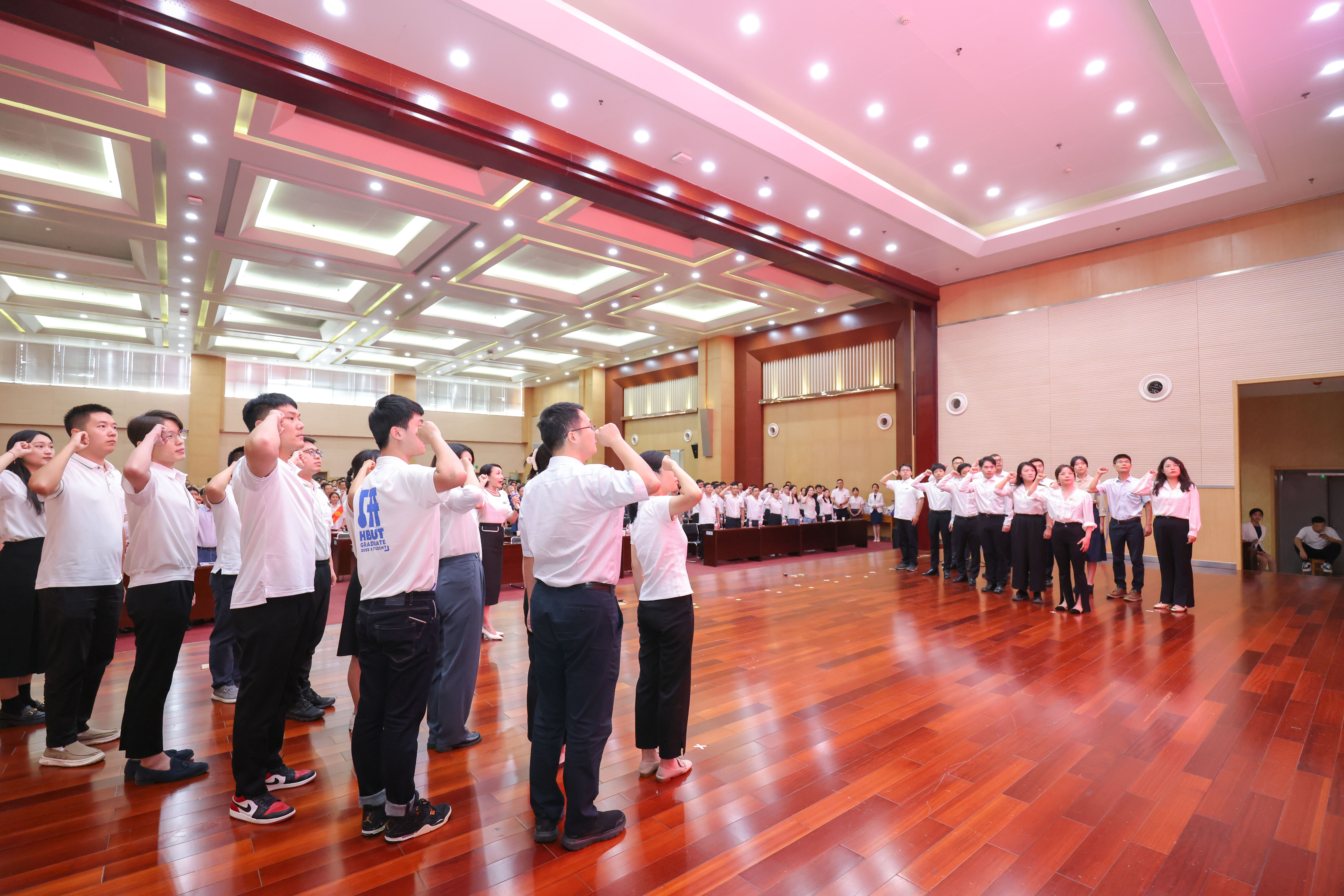 大会为150余名新教师举行了入职仪式。由荣休教师和教从教满三十周年教师代表为新教师佩戴校徽,并且在湖北名师、土木建筑与环境学院黄艳雁教授带领下,进行了教师宣誓。