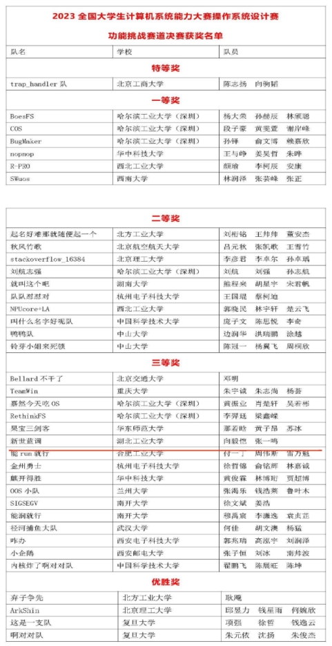 8月18日至23日,2023全国大学生系统能力大赛(操作系统设计赛)决赛在中山大学举办。我校底特律绿色工业学院学子向毅恺与张一鸣在与全国众多知名高校学生比拼中脱颖而出,荣获全国三等奖,取得我校在该项赛事上的历史性突破。计算机学院刘永川老师获“优秀指导教师”奖。