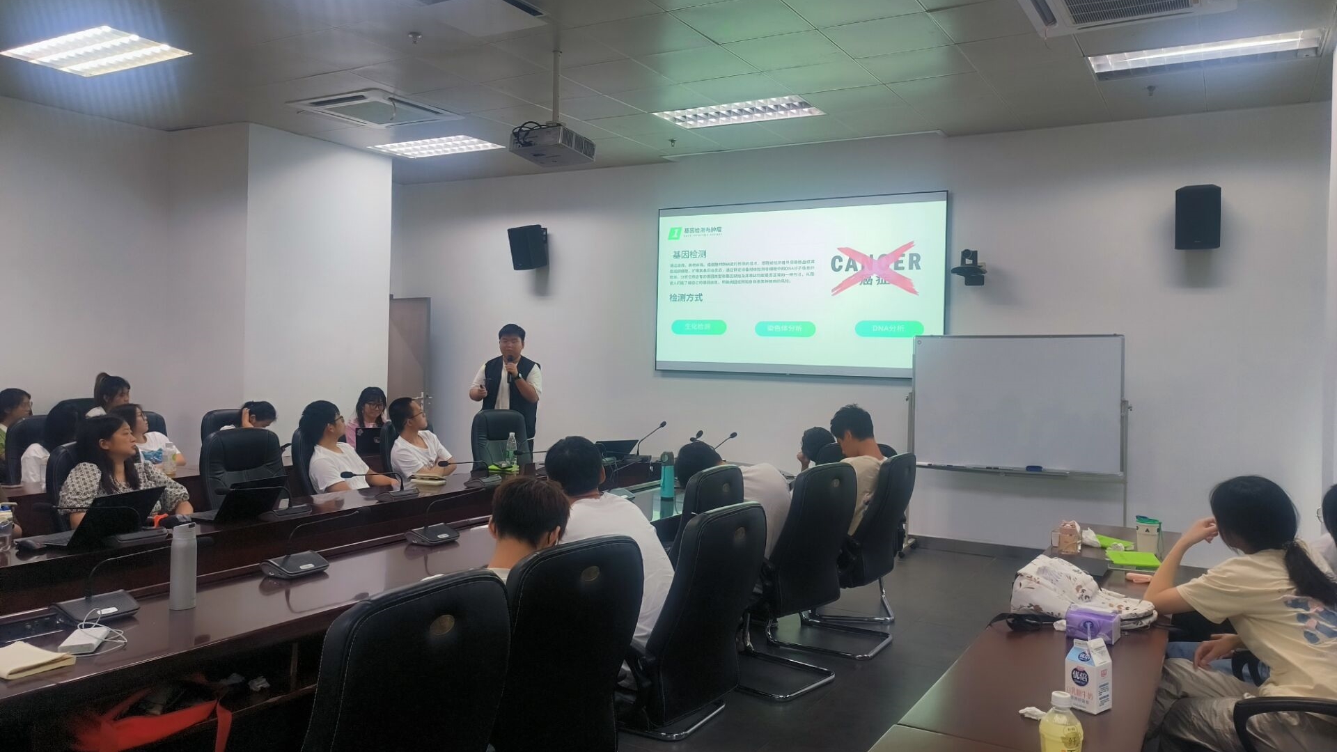 7月3日,开营仪式在武汉华大基因举办。武汉华大基因生产总监吴昊为同学们介绍了当今基因检测行业的现状,以及华大基因作为世界顶尖的基因测序公司与民族品牌,在促进人类健康与抗疫斗争中做出重要贡献。在参观了企业展厅及实验室之后,华大基因的老师们为同学们带来了多场前沿技术讲座,包括基因组学研究及行业发展、体外诊断试剂全生命周期管理、华大股份生育健康业务及产品介绍-携带者检测、肿瘤防控产品技术介绍-无创肠癌筛查等课程,内容丰富,同学们收获颇丰。