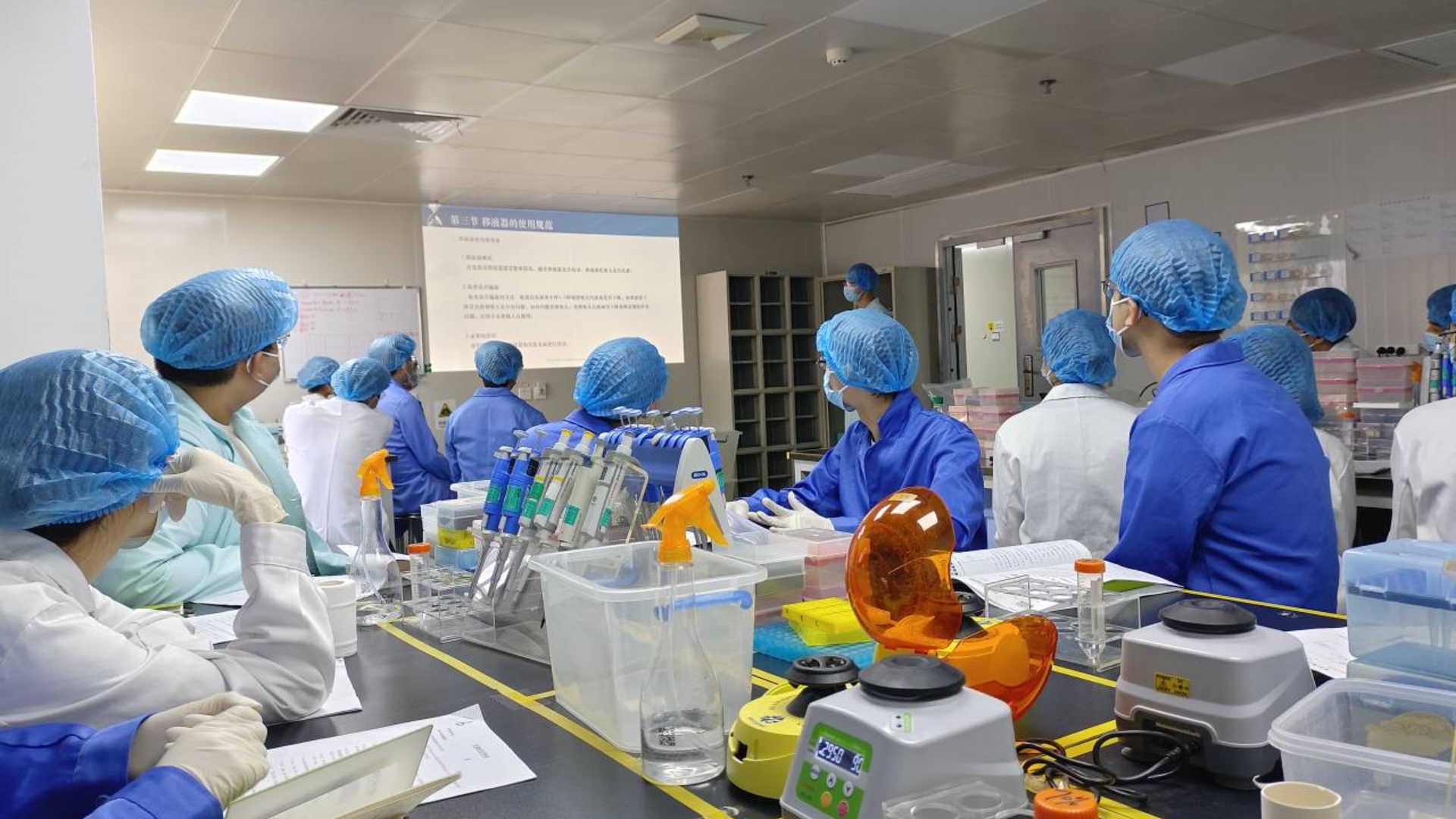 自7月5日,开始为期3天的技术培训与考核,包括单道移液器操作的理论学习与考核,基因组学理论与实操,分团队项目实习与答辩。同学们学习了单道移液器的相关理论知识与分子生物学实验室高级操作规范,包括实验准备阶段的个人清洁与防护、实验操作过程多达十多项的操作规范与注意事项、实验结束后的收尾工作。在技术考核中,94%的同学通过了考核并取得较好成绩。基地班的同学们虽然已在实验室经过科研培训并开始科研工作,但是如此严格的实验操作仍然充满挑战,纷纷表示要将此次培训的成果运用于平时的科研学习过程中。