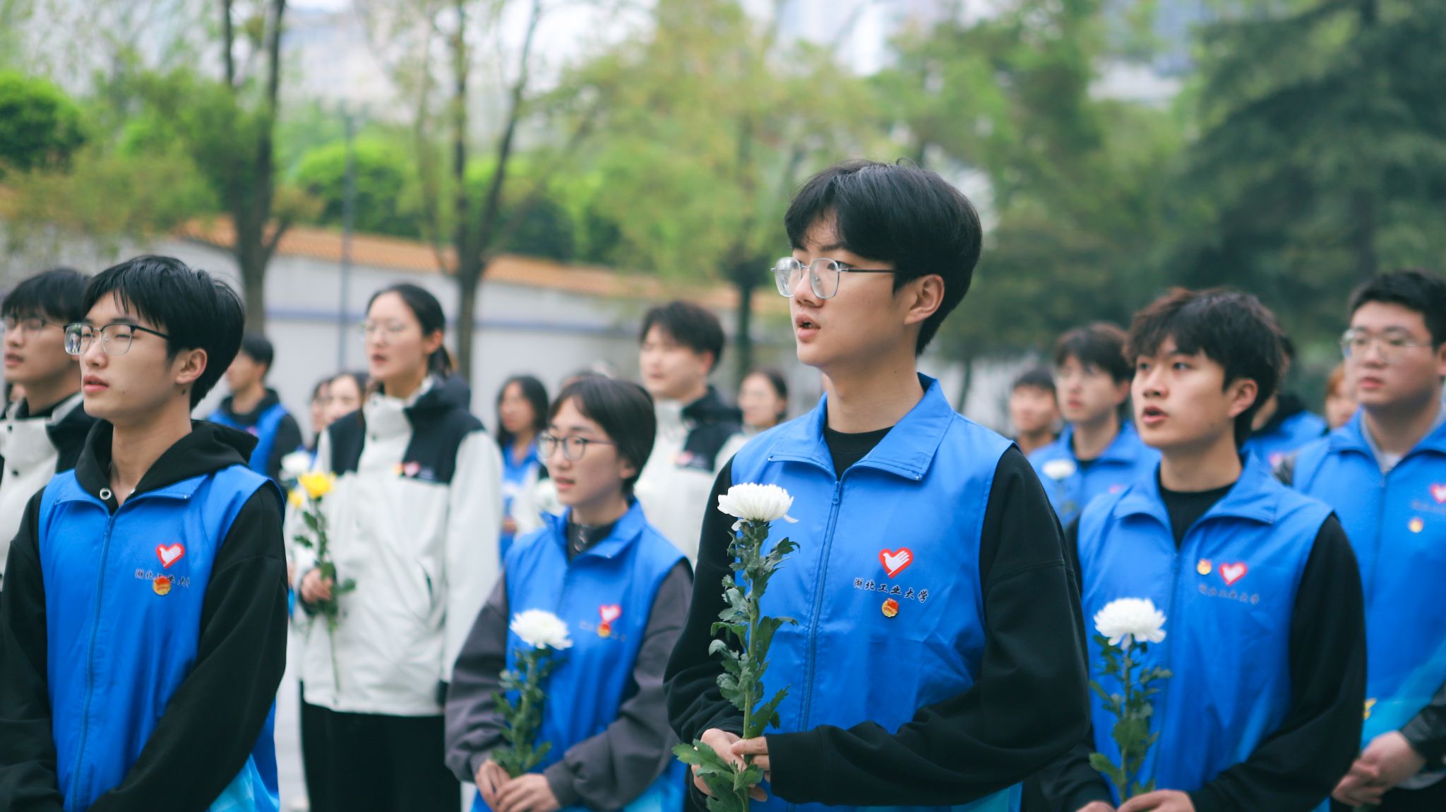 校学生会执行主席葛子德作为学生代表发言。他谈到,正是无数革命先烈前赴后继的英勇牺牲,才有了今天我们来之不易的幸福生活。他号召全校团员青年继承和发扬革命先烈遗志,以“五个模范”的标准和要求,以朝气蓬勃的精神状态在青春的赛道上跑出湖工大青年的最好成绩。葛子德带领同学们重温入团誓词,“为共产主义事业而奋斗!”的铮铮誓言在烈士陵园上空久久回荡。