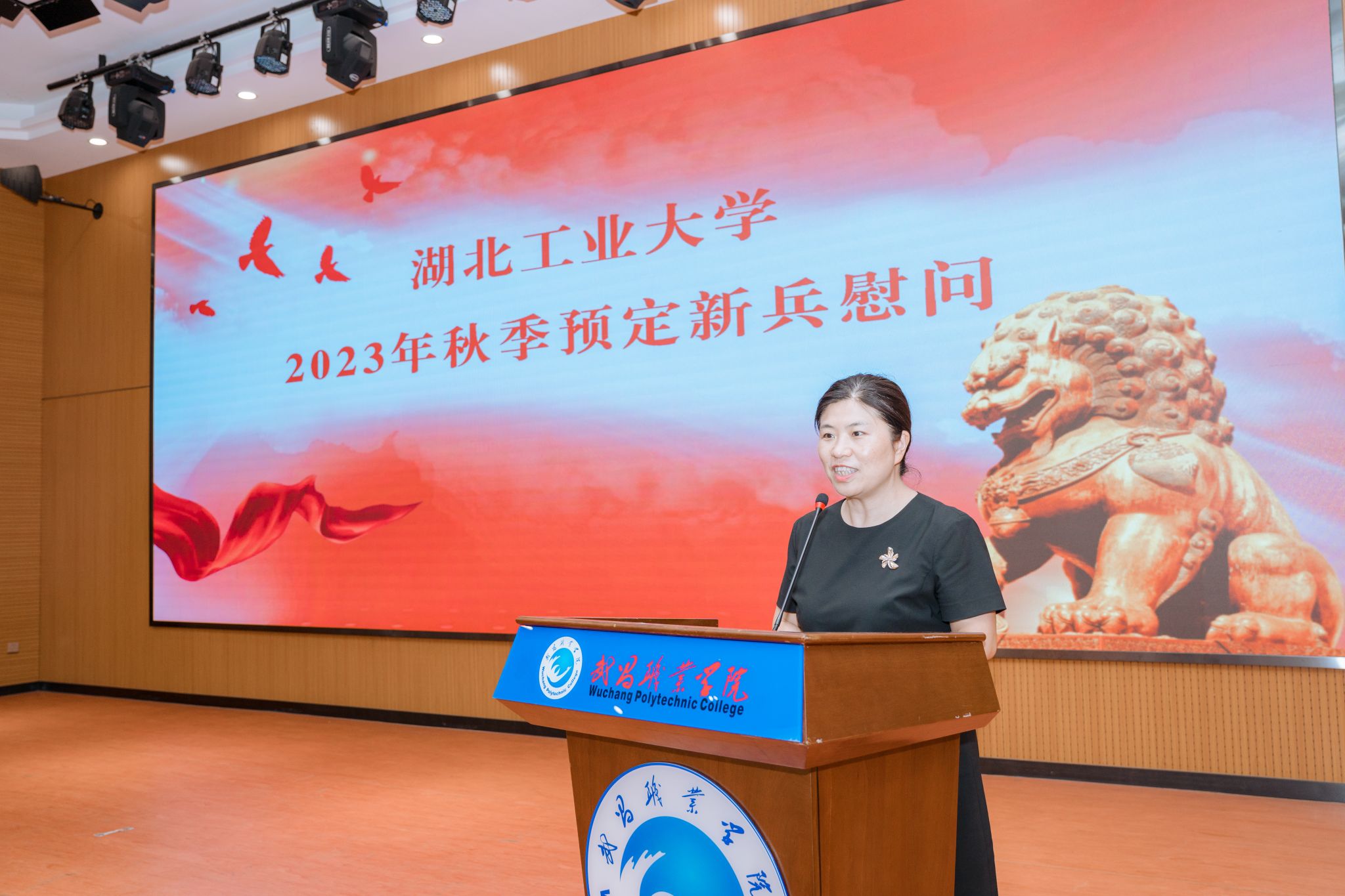 胡晓艳对即将光荣参军入伍的同学们表示热烈祝贺,对大家在役前教育期间表现出的良好精神风貌表示高度肯定,对江岸区人装部和武昌职业学院对我校征兵工作和学生生活保障的帮助指导表示由衷感谢。临别之际,她代表学校向全体“准新兵”送上三点希望和祝福:一是希望大家发扬“厚德博学 求实创新”的校训精神,在部队的大熔炉里苦练本领,努力成为堪当兴国强军重任的新时代革命军人;二是希望大家发挥大学生文化素质高的优势,带头做好理论知识学习和专业技能训练,用真知实学报效祖国;三是希望大家进入部队后,常与父母、老师联系,在部队再立新功,为学校争光添彩,母校永远是大家的坚强后盾。