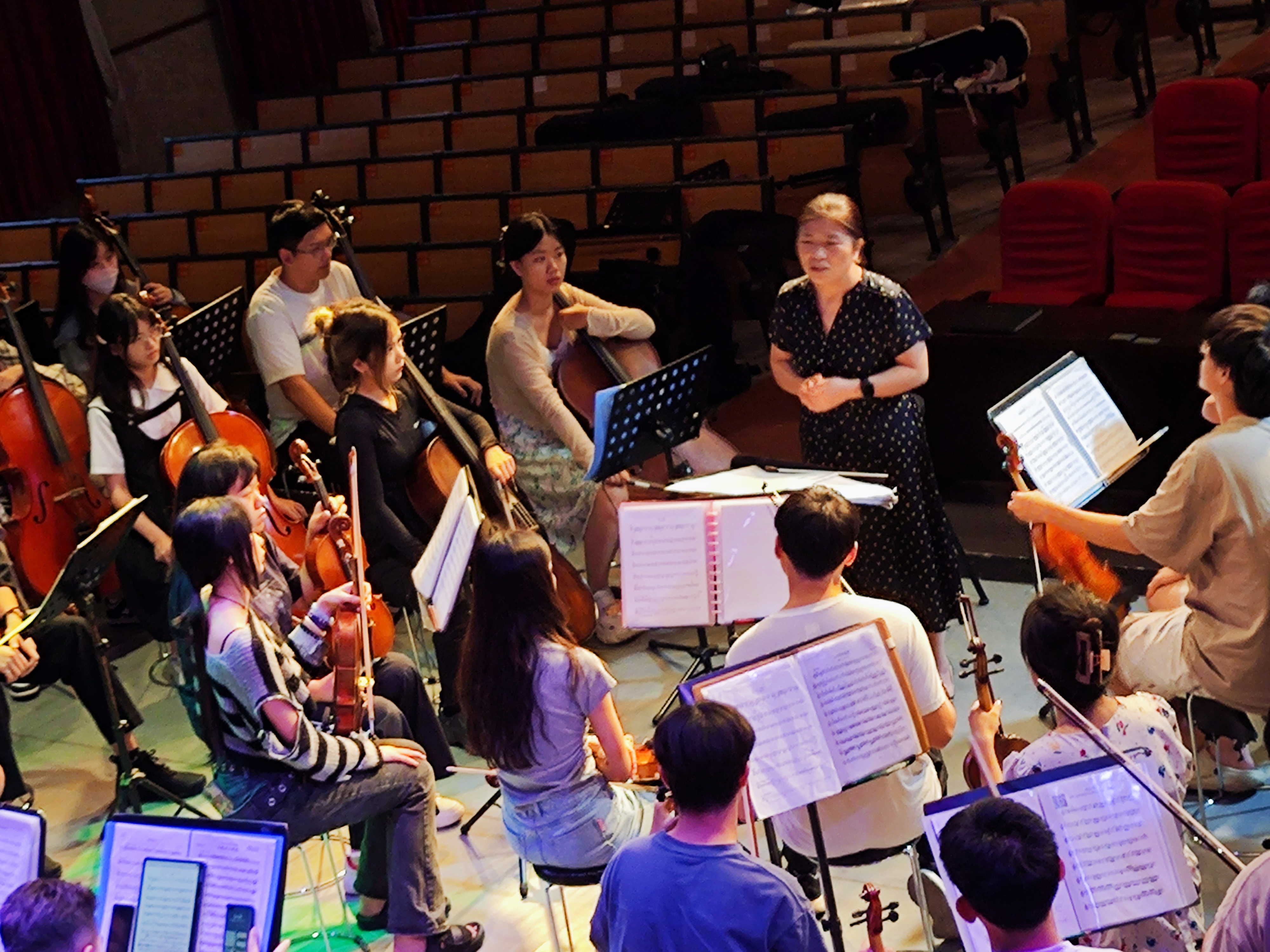 胡晓艳先后来到大礼堂、南区教工活动中心等排练地点, 观看了管弦乐合奏、舞蹈等节目的彩排。在排练现场,胡晓艳与参加暑期集训的师生进行了亲切交谈,并详细询问了相关节目的准备情况和排练计划,对大家放弃暑假休息,不畏酷暑坚持训练所表现出来的精神,予以充分肯定,并对同学们的表演给予了高度评价。她指出,希望同学们通过文艺作品了解创作时期家国情怀,用文艺作品展现作品所属时代的精神,讲述好中国故事,坚定文化自信。她勉励大家继续保持高昂的排练热情,刻苦训练,在湖北省大学生艺术节中取得优异成绩,力争登上国家级展演的舞台,同时提醒同学们要劳逸结合,注意身体,不要受伤。
