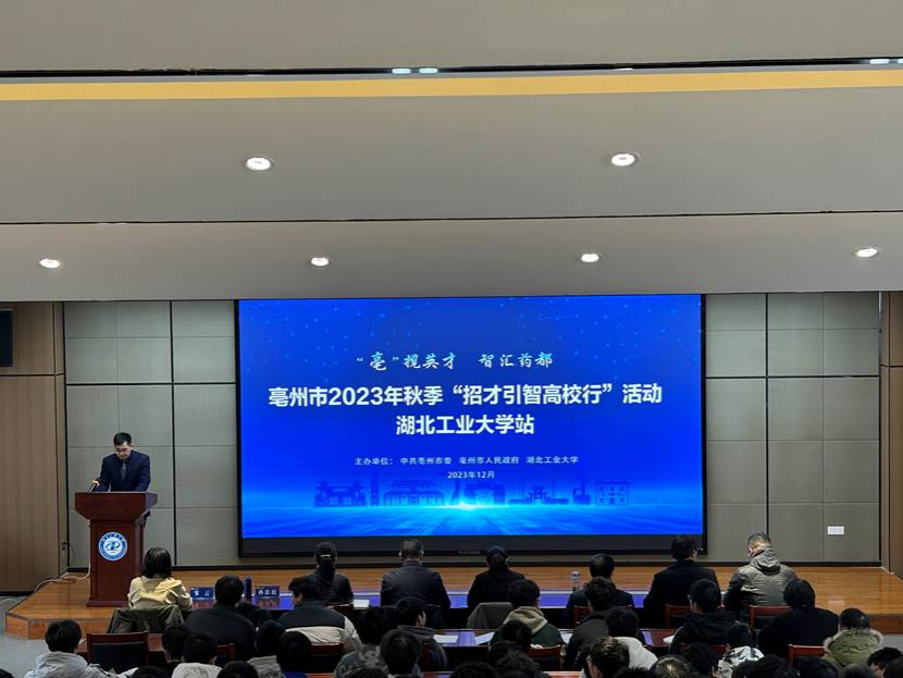 12月12日,亳州市“招才引智高校行”活动在我校成功举办。本次活动分为“招才引智”城市推介会和就业市场招聘两个环节,校党委副书记胡晓艳、亳州市政府副秘书长刘仲远出席本次活动并致辞。