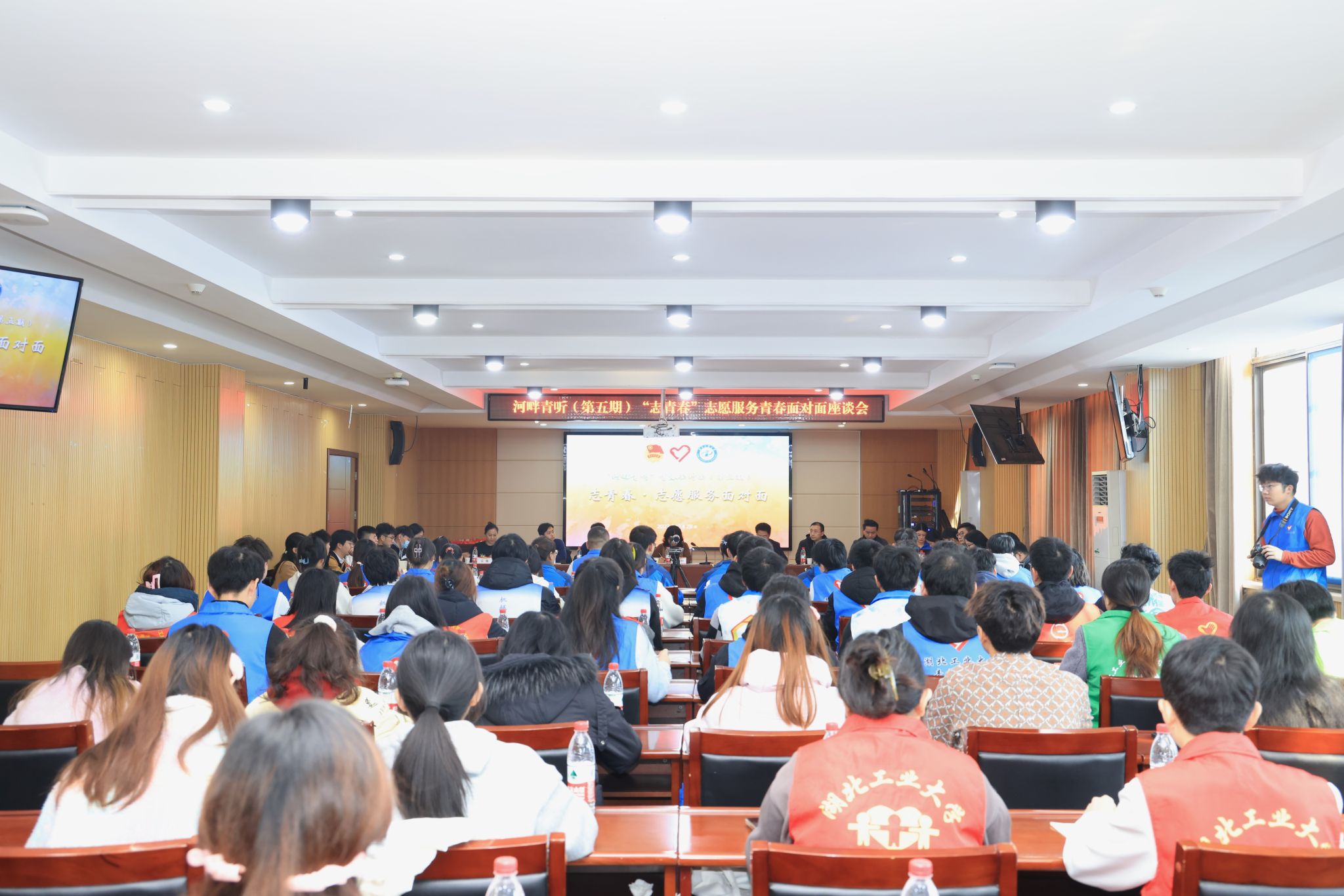 12月28日下午,学校举行“河畔青听·志青春”志愿服务青春面对面座谈会,座谈会采用线上线下相结合的形式进行,校党委副书记胡晓艳与广大青年志愿者畅谈志愿精神,共话青春担当。