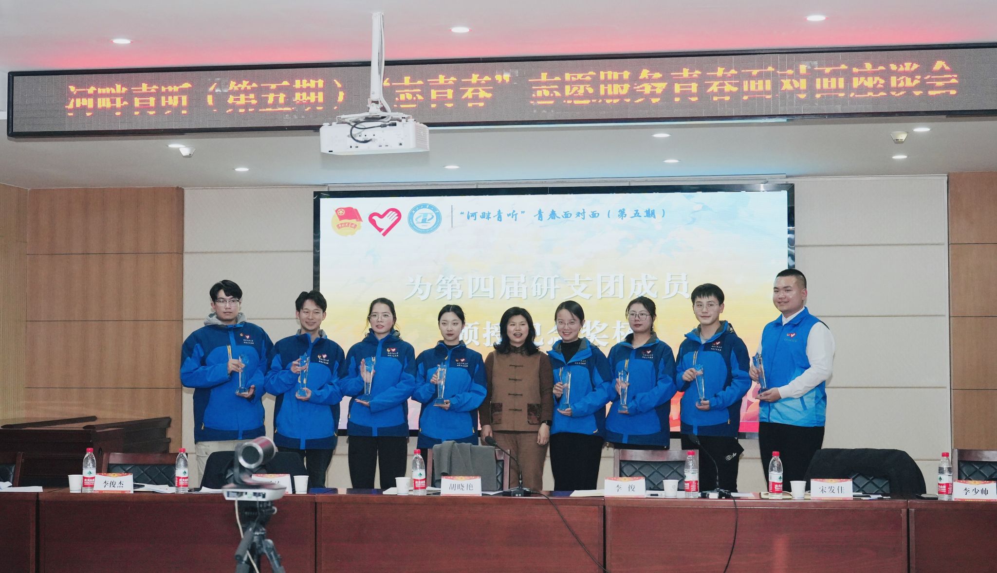 座谈会上,胡晓艳为第四届研支团全体成员颁发了纪念奖杯。