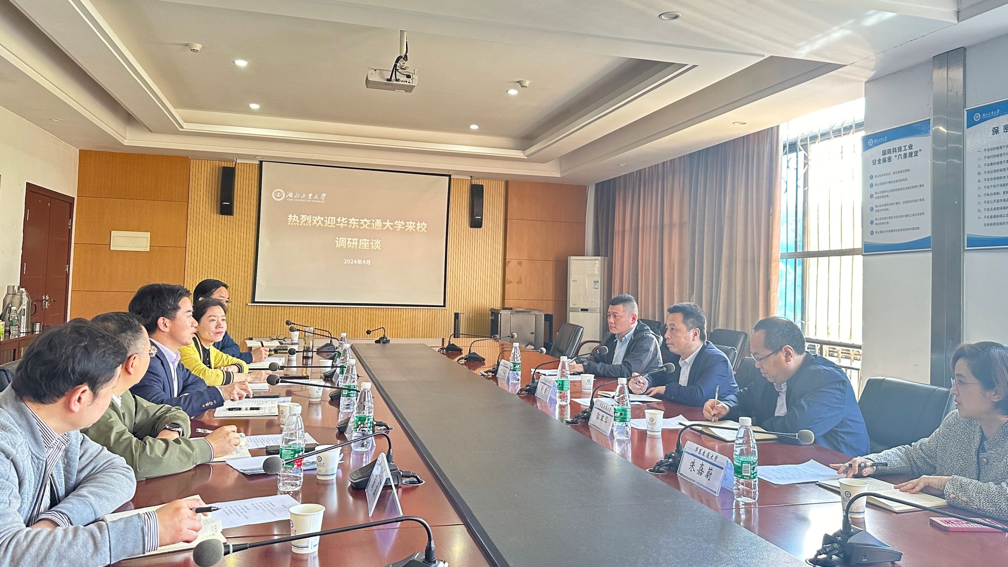 肖乾介绍了华东交通大学发展历史、学科特色等情况,并对本次调研的内容进行了说明,希望双方发挥学科特色优势,加强合作,共同推动两校实现跨越式融合发展。