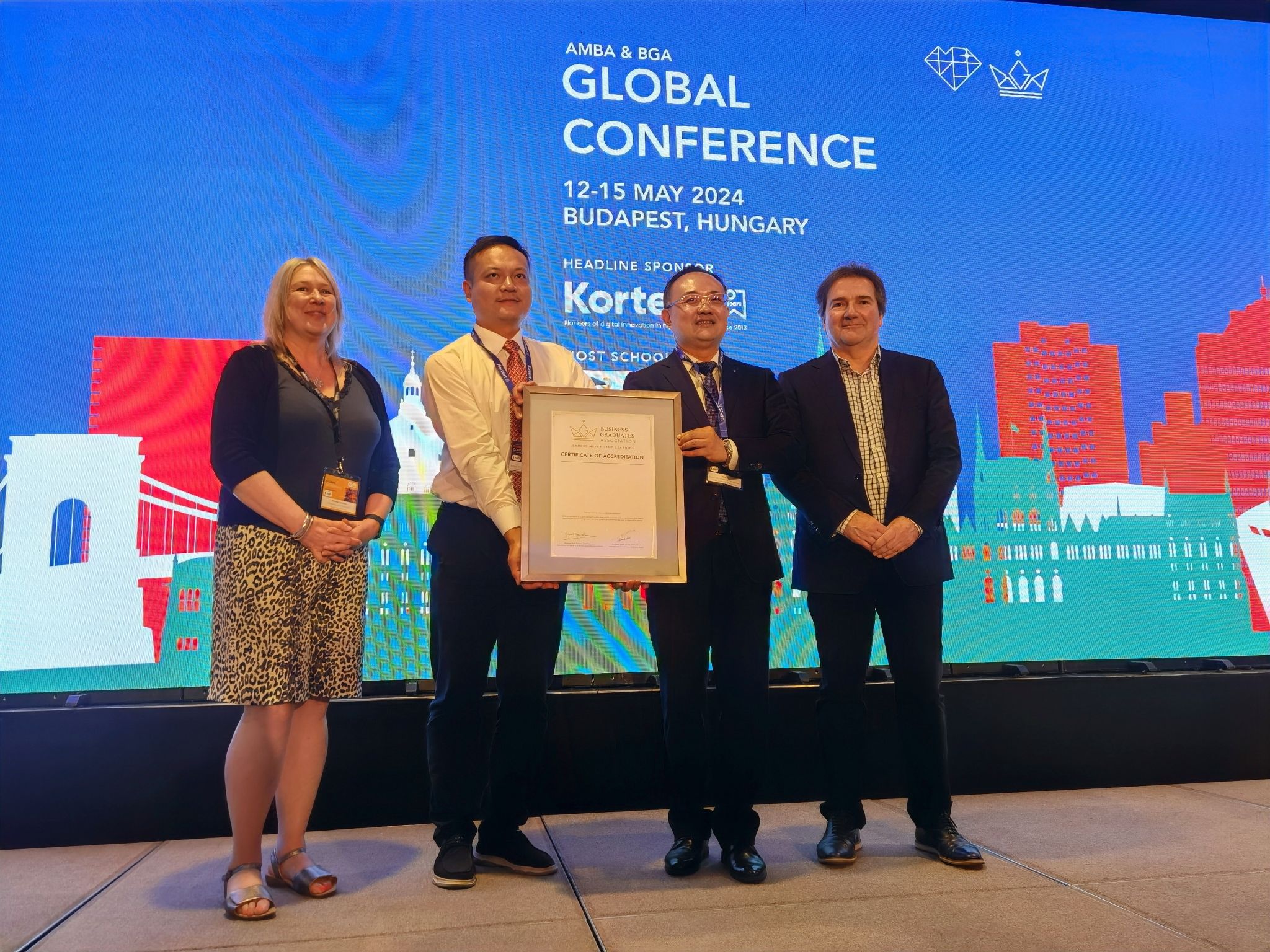 应英国工商管理硕士协会和商学院毕业生协会(简称AMBA&BGA)的邀请,5月12日至15日经管学院院长孙浩等一行,参加了在匈牙利布达佩斯举行的2024年AMBA&BGA全球大会。全球大会期间,AMBA&BGA组织对获得金牌认证的商学院举行现场授证仪式,AMBA&BGA首席执行官Andrew Main Wilson先生和AMBA&BGA主席Wendy Loretto教授为学院颁发BGA国际金牌认证。