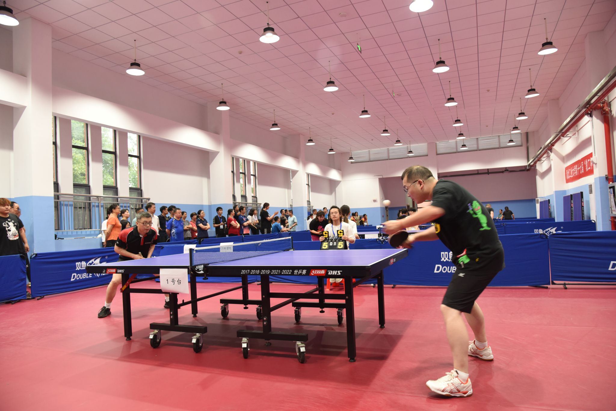 乒乓球运动在我校具有广泛的群众基础,“教工杯”乒乓球赛是我校一项具有深厚底蕴的教职工文体活动,深受教职工的喜爱和各单位的重视。本次比赛,18个二级工会(单位)组成17支代表队,吸引了200余名乒乓球爱好者参加男女混合团体赛。