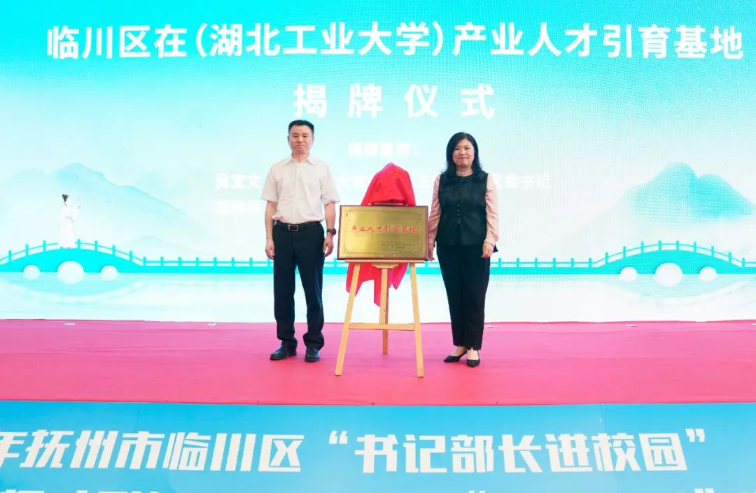 胡晓艳、吴宜文共同为“临川区(湖北工业大学)产业人才引育基地”揭牌。
