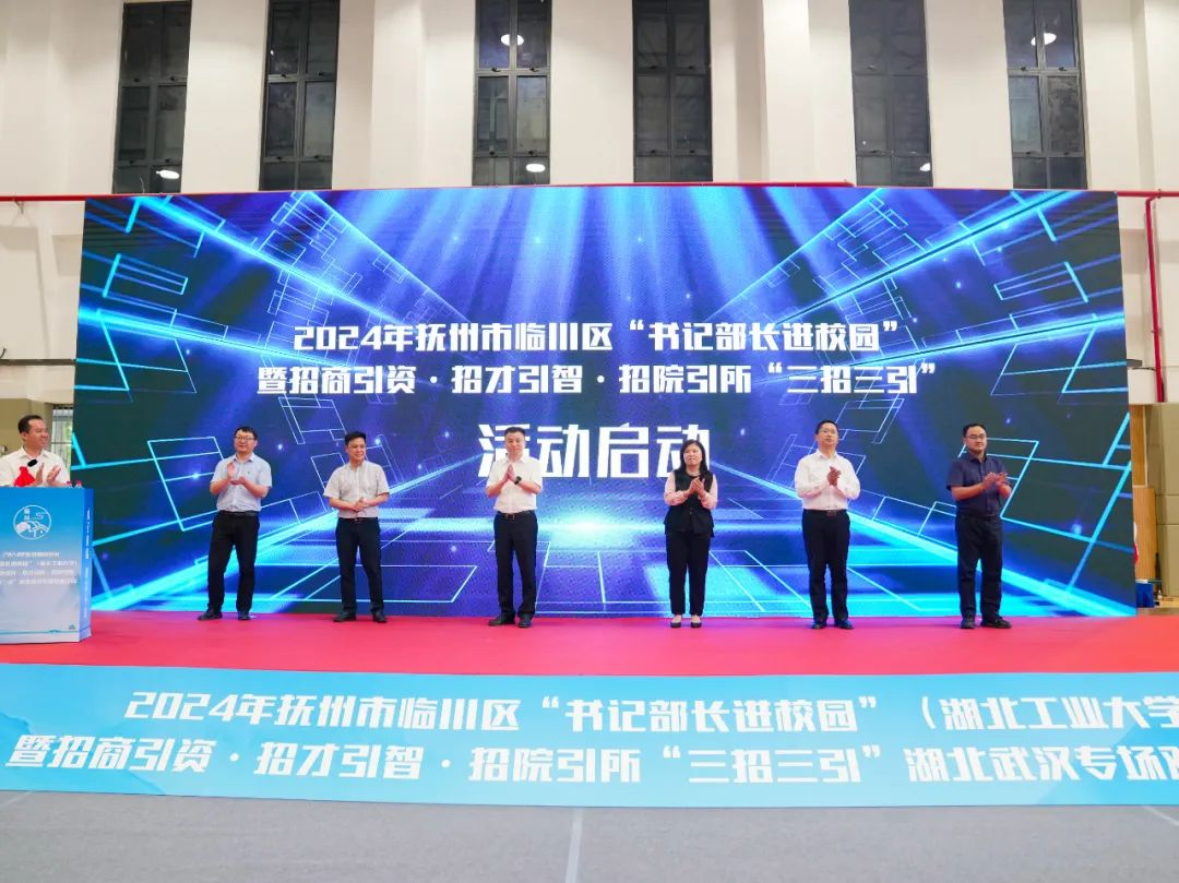 5月11日,2024年临川区“书记部长进校园”暨招商引资·招才引智·招院引所“三招三引”武汉专场对接活动在我校举行。校党委副书记胡晓艳、抚州市人大常委会副主任、区委书记吴宜文出席本次活动并致辞。