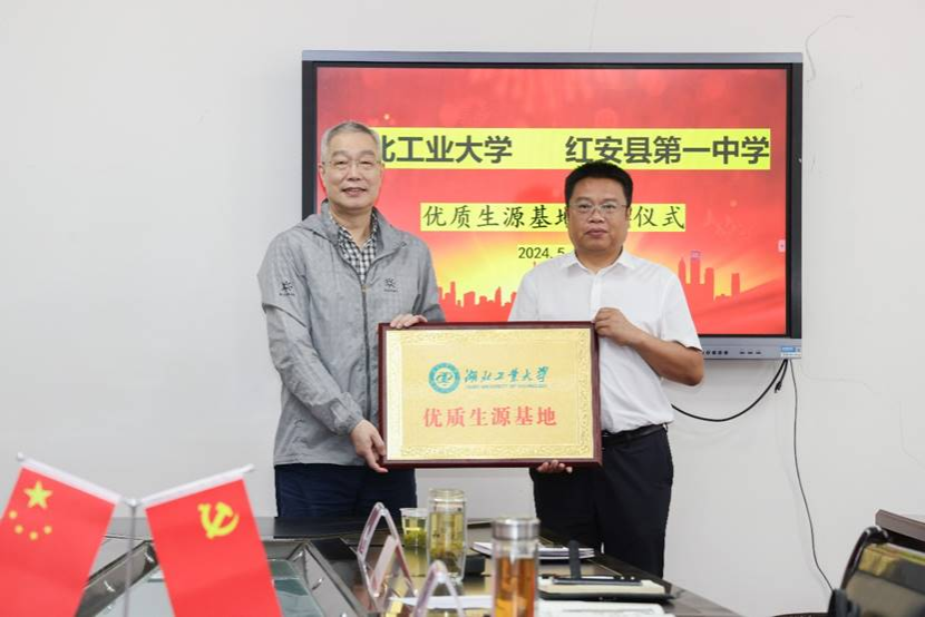 冯征一行还走访红安一中,听取我校电气与电子工程学院、国际学院为红安一中开展的科技讲堂、中外文化互融互鉴课堂,并举行“优质生源基地”签约授牌仪式。会上,招生与就业指导处相关同志对学校今年的招生政策进行了解读,胡晓艳介绍了学校人才培养基本情况。双方还就招生录取、大中小学生思政一体化建设等方面进行了深入交流。