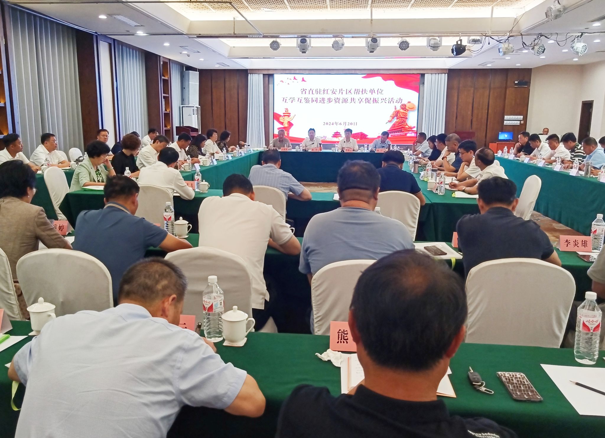 6月20日上午,省直对口帮扶单位“互学互鉴同进步 资源共享促振兴”交流会议在玺丽国际大酒店举行。会上,胡晓艳围绕高质量谋求产业、多元化人才支持、高品质美化乡村、全方位校地共建等方面介绍了学校上半年帮扶工作成效,聚焦乡村靓化、农旅产业可持续发展、爱心消费帮扶等对下半年工作打算进行安排,并就资源共享项目进行了交流。她表示,2024年是新中国成立75周年,也是五年过渡期的关键之年。学校将高度重视对红安县的结对帮扶工作,立足校地实际,以学习运用“千万工程”经验为引领,以高质量发展为主线,有力推进“百校联百县兴千村”行动,扎实做好巩固脱贫攻坚成果同乡村振兴有效衔接工作,为全面推进乡村振兴、加快农业农村现代化提供强有力支撑。