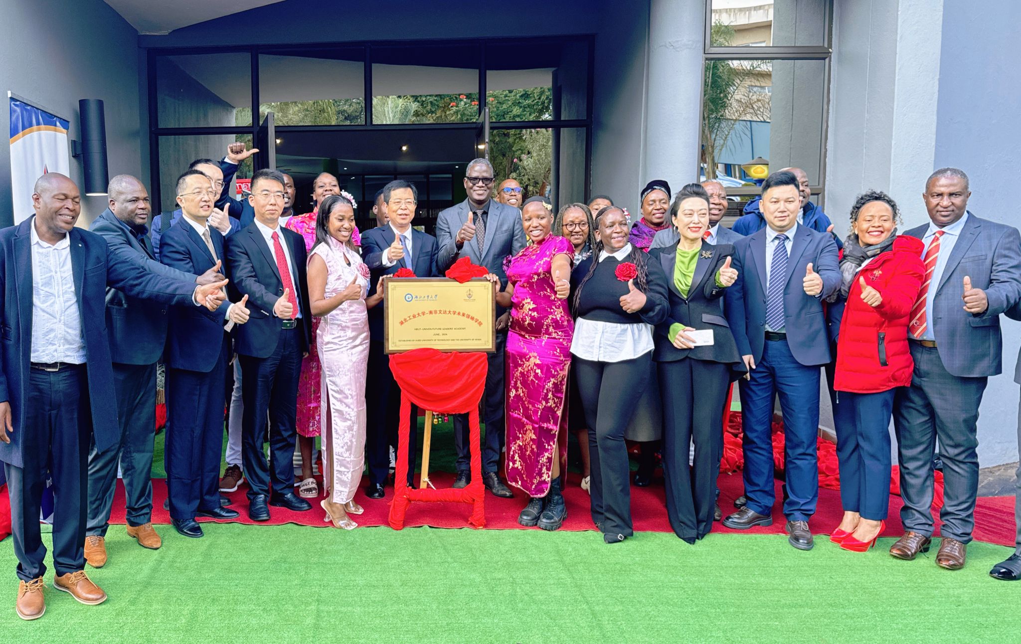 6月27日,代表团访问南非文达大学。与文达大学签署联合建立“湖北工业大学-南非文达大学未来领袖学院”合作协议,并在文达大学绿色科技孔子学院举行了隆重的“未来领袖学院”揭牌仪式。文达大学校长朗姆贝勒尼教授、副校长费扎教授、各学院院长及各主要职能部门负责人出席座谈会与揭牌仪式。代表团还看望了我校在文达大学绿色科技孔子学院任教的教师团队,了解其教学、生活相关情况,并对团队成员进行鼓励和慰问。