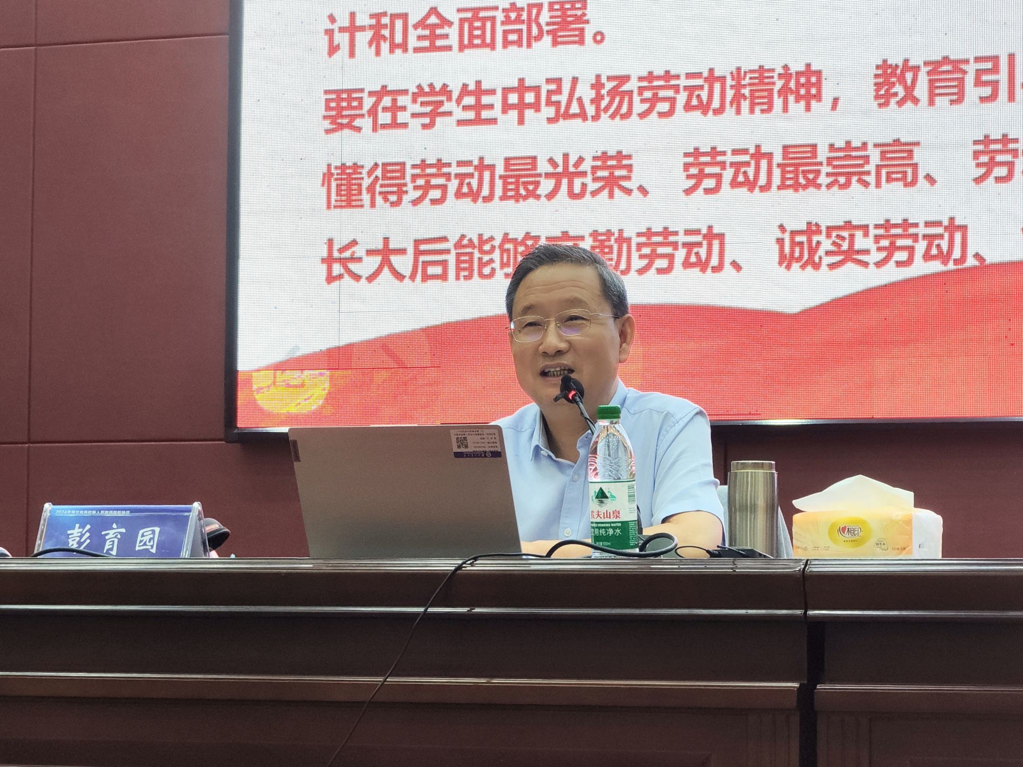 7月11日上午,学校党委书记彭育园以《坚持不懈用习近平新时代中国特色社会主义思想凝心铸魂坚守立德树人根本任务和时代使命》为题为新入职教师讲授第一课。