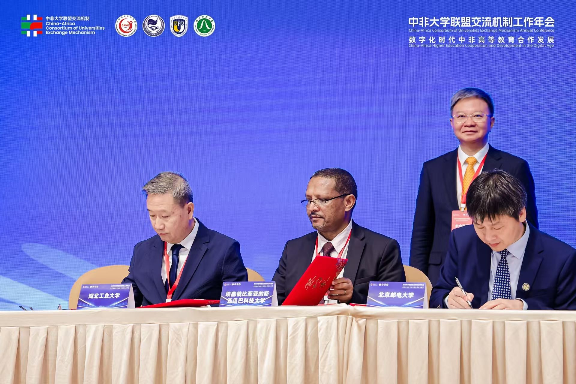 开幕式后,举行了中非教育合作系列重大项目签约仪式及重大合作成果发布会,14项中非教育合作项目现场签约。彭育园代表学校与埃塞俄比亚亚的斯亚贝巴科技大学校长德雷杰·沃尔德迈克尔签署了合作共建“中非青年创新创业联盟”战略合作协议。未来两校将作为中非双方创新创业领域牵头高校,共同吸收中非两地高校加入联盟,定期举办高质量的中非青年创新创业活动,促进中非青年互学互鉴,提升中非高校培养创新创业能力强的高素质应用型人才。