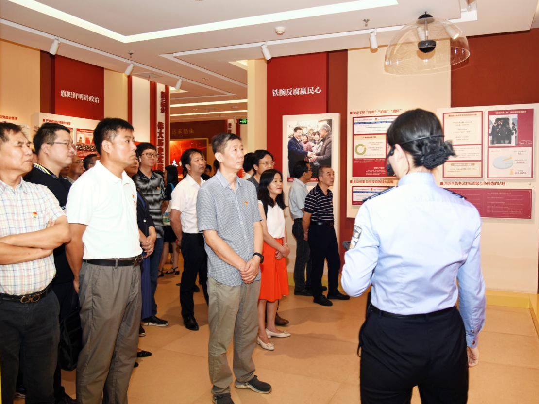 在基地讲解员的带领下,全体人员依次参观了“赶考之路”“廉政之规”“覆车之鉴”“湖北之为”等四个主题展厅,通过听取讲解、视频介绍、图文阅读、互动观看、警示案例展等形式,全面了解了党的百年奋斗和自我革命历程,重温了建国以来党和国家主要领导人关于党风廉政建设工作的重要论述,见证了党的十八大以来全面从严治党取得的伟大成就,以及湖北省党风廉政建设和反腐败斗争取得的重大成果。在展馆二楼,一桩桩鲜活沉痛的案例,一段段发自肺腑的忏悔,帮助党员干部进一步认识到,腐败是危害党的生命力和战斗力的最大毒瘤,反腐败是最彻底的自我革命,进一步加深了党员干部对新修订的《中国共产党纪律处分条例》的认识和理解。