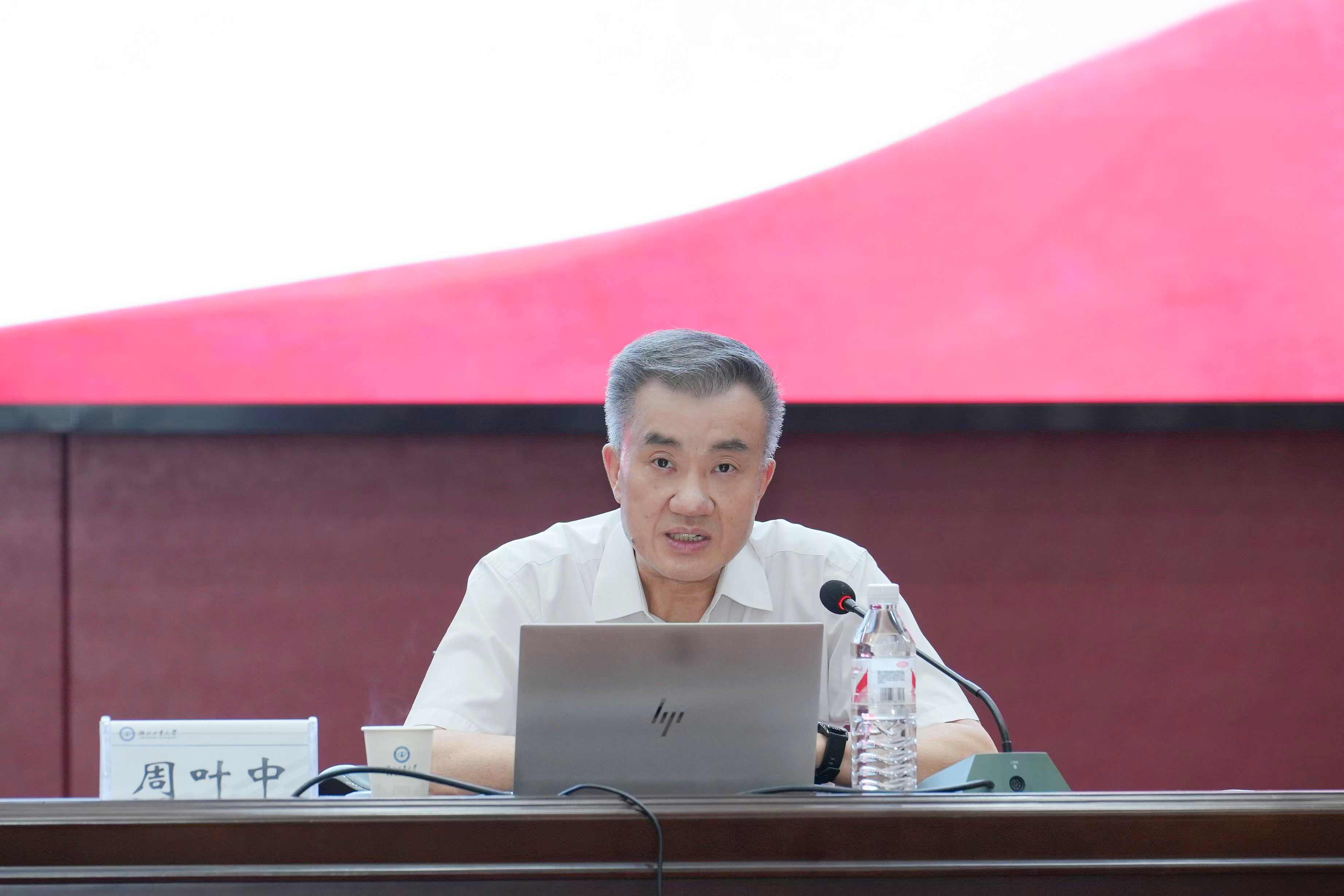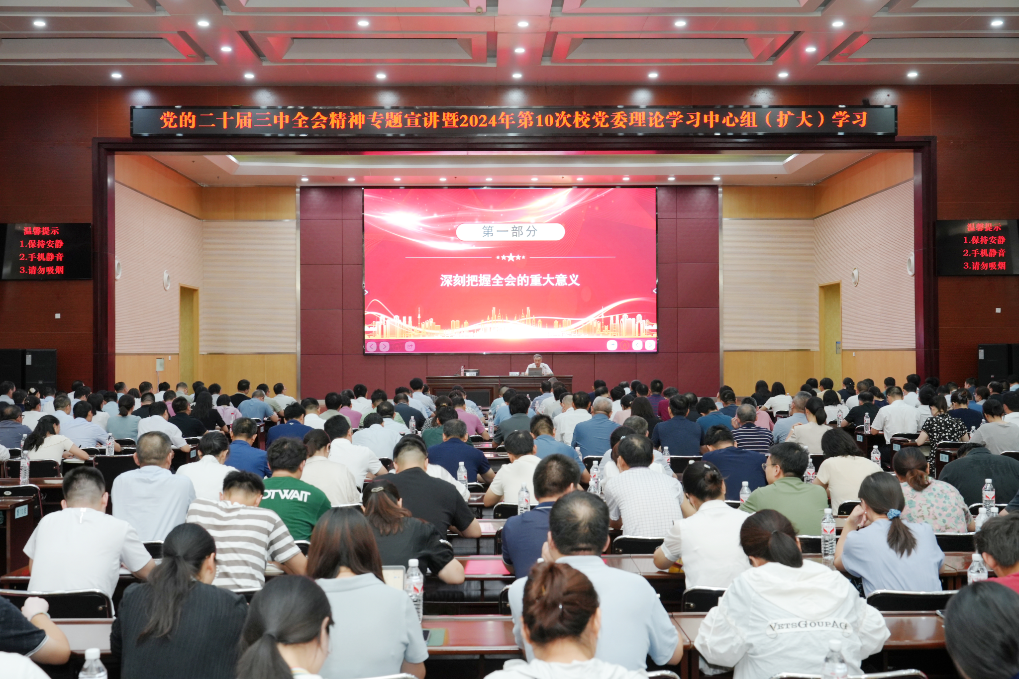 9月6日下午,党的二十届三中全会精神专题宣讲暨2024年第10次校党委理论学习中心组(扩大)学习在图书馆报告厅举行。省委宣讲团成员、武汉大学人文社会科学资深教授周叶中来校作专题宣讲报告。校党委书记彭育园主持会议,在家校领导、党委常委参加学习。