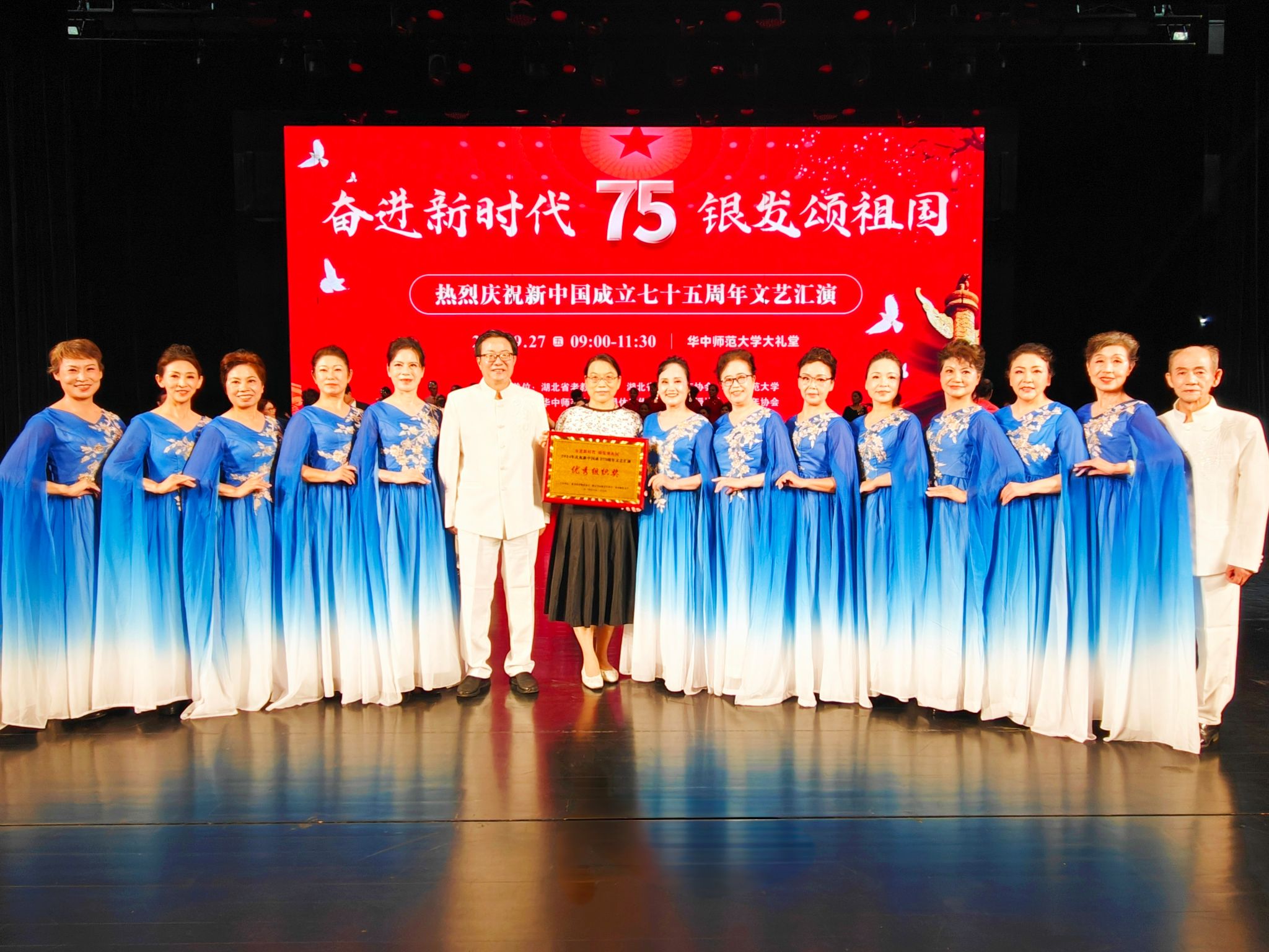 9月27日,由湖北省高校老年协会、湖北省老教授协会举办的“奋进新时代 银发颂祖国”庆祝新中国成立75周年文艺汇演在华中师范大学举行,来自全省24所高校的25个节目进行了汇报表演。