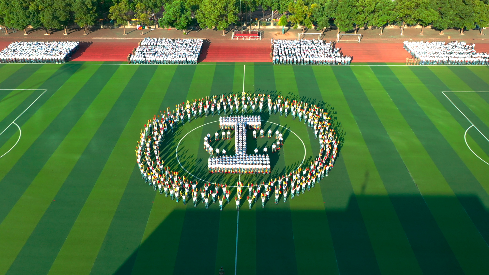 “我和我的祖国,一刻也不能分割。无论我走到哪里,都流出一首赞歌”全场师生挥动小红旗,齐声合唱《我和我的祖国》,动人的旋律在校园上空回荡,为新中国成立75周年献上美好祝福。