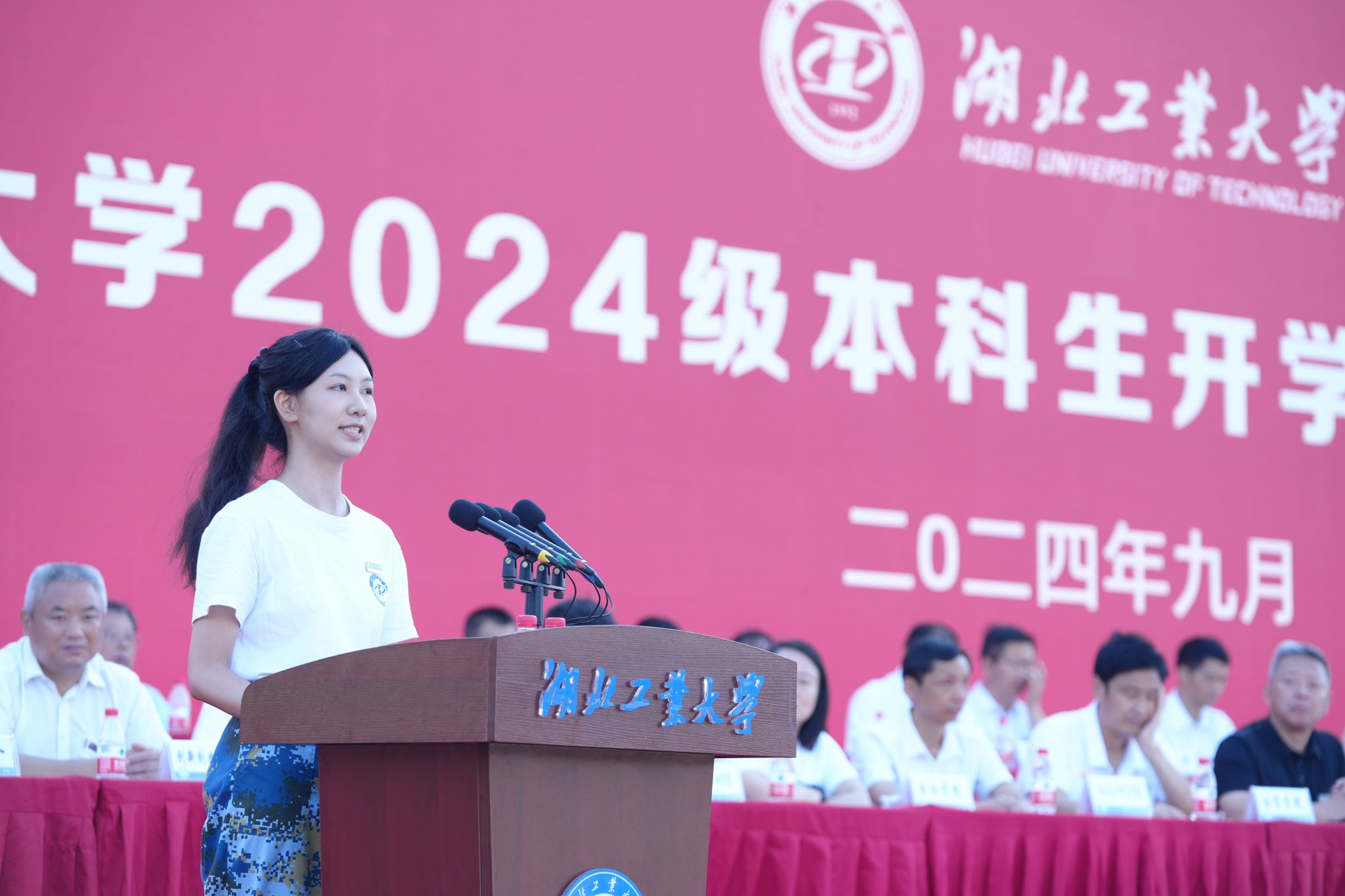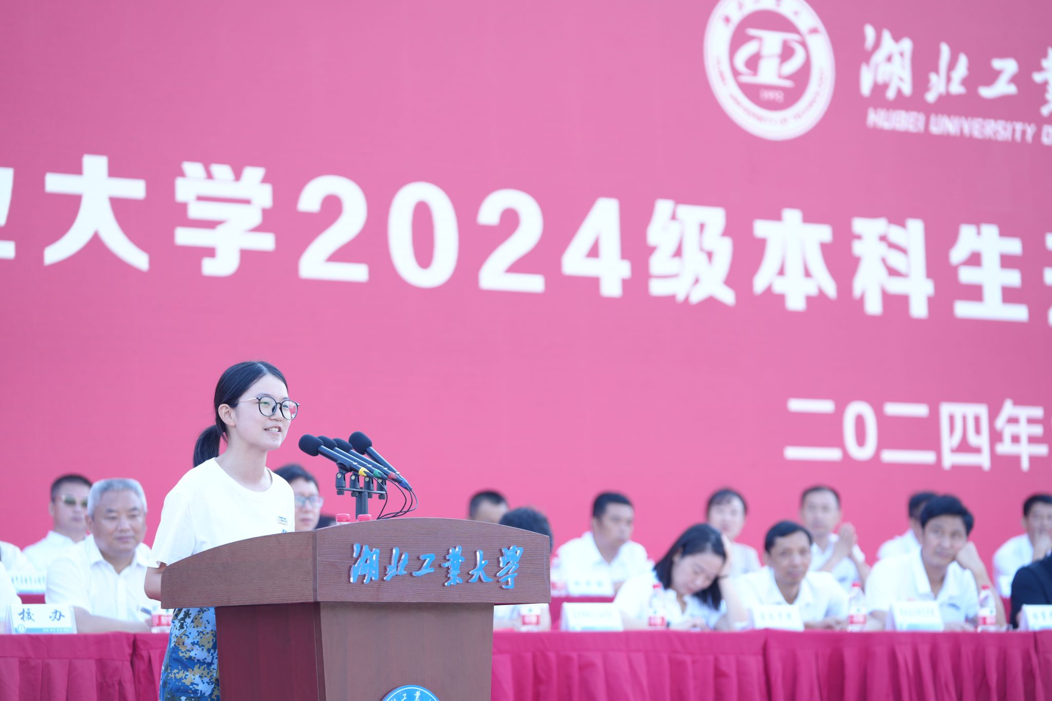 9月29日上午,湖北工业大学2024级新生开学典礼暨“大学第一课”在中区操场隆重举行。校党委书记彭育园等全体在校领导、海军工程大学宋雨轩上校、2005届校友董帆、教师代表潘军华及各学院、各职能部门(单位)负责人、新生辅导员出席典礼。典礼由校党委副书记胡晓艳主持。