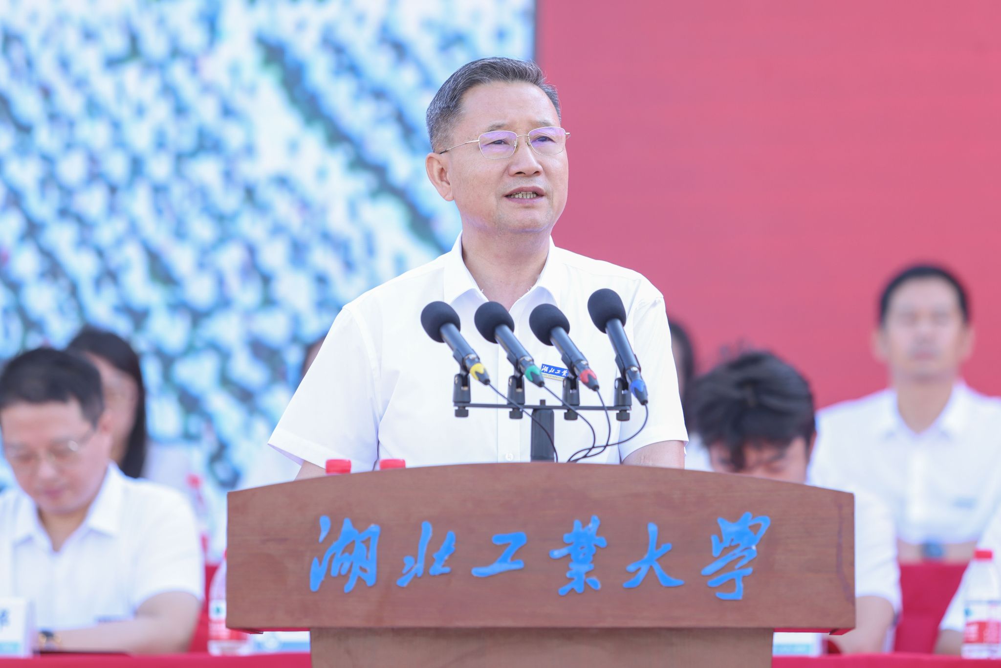 他回顾了“伴随共和国前进的脚步,湖工大因工而生;踏着改革开放的时代春风,湖工大因工而兴;坚守立足湖北、服务工业的使命担当,湖工大因工而强”的建设发展历程。希望同学们培根铸魂,厚植“工业报国”的理想信念;锐意创新,锻造“工业兴国”的本领学识;开放包容,涵养“工业强国”的宽广胸襟。