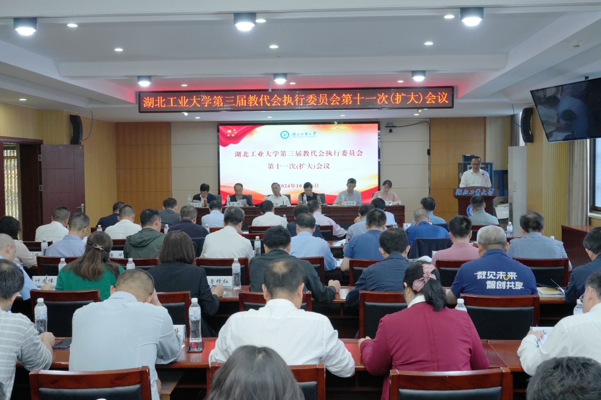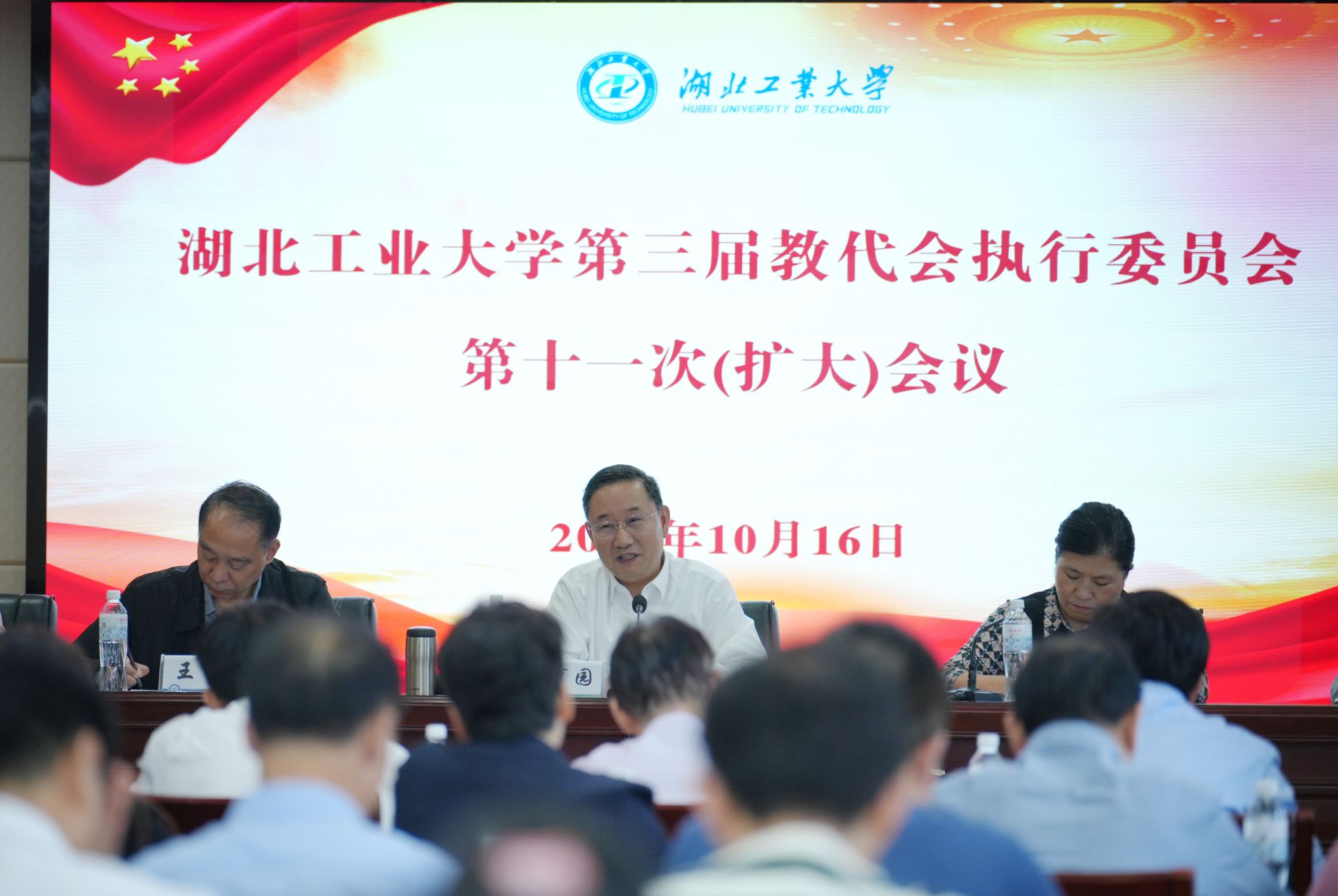 10月16日,学校第三届教代会执行委员会第十一次(扩大)会议在行政楼一楼会议室召开。校党委书记彭育园出席会议并讲话,会议由校党委副书记胡晓艳主持。