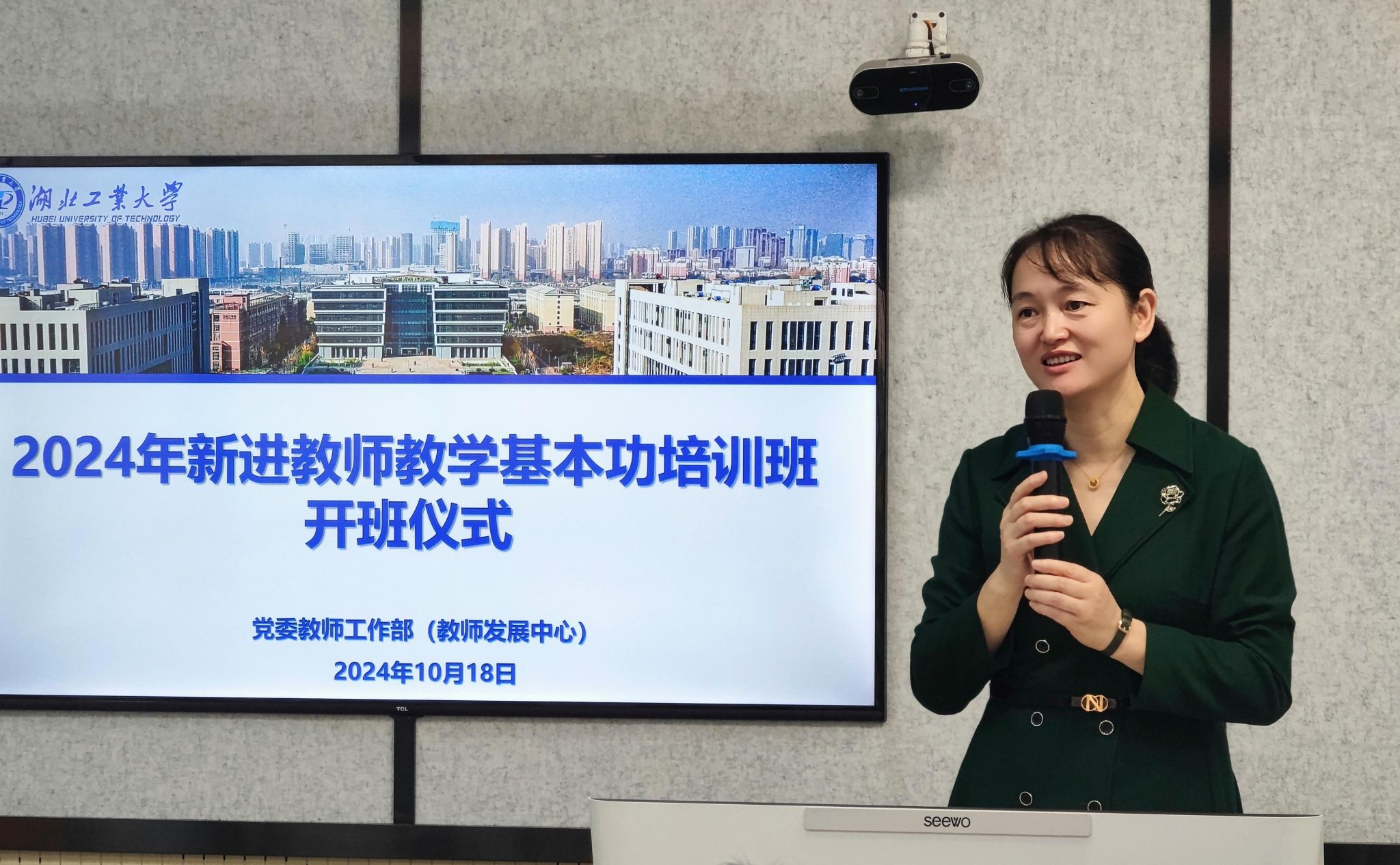 10月18日上午,学校在实训楼B1-5多功能厅举行2024年新进教师教学基本功培训班开班仪式。校党委常委、党委组织部部长桂丽出席并讲话,开班仪式由党委教师工作部部长徐妹主持。