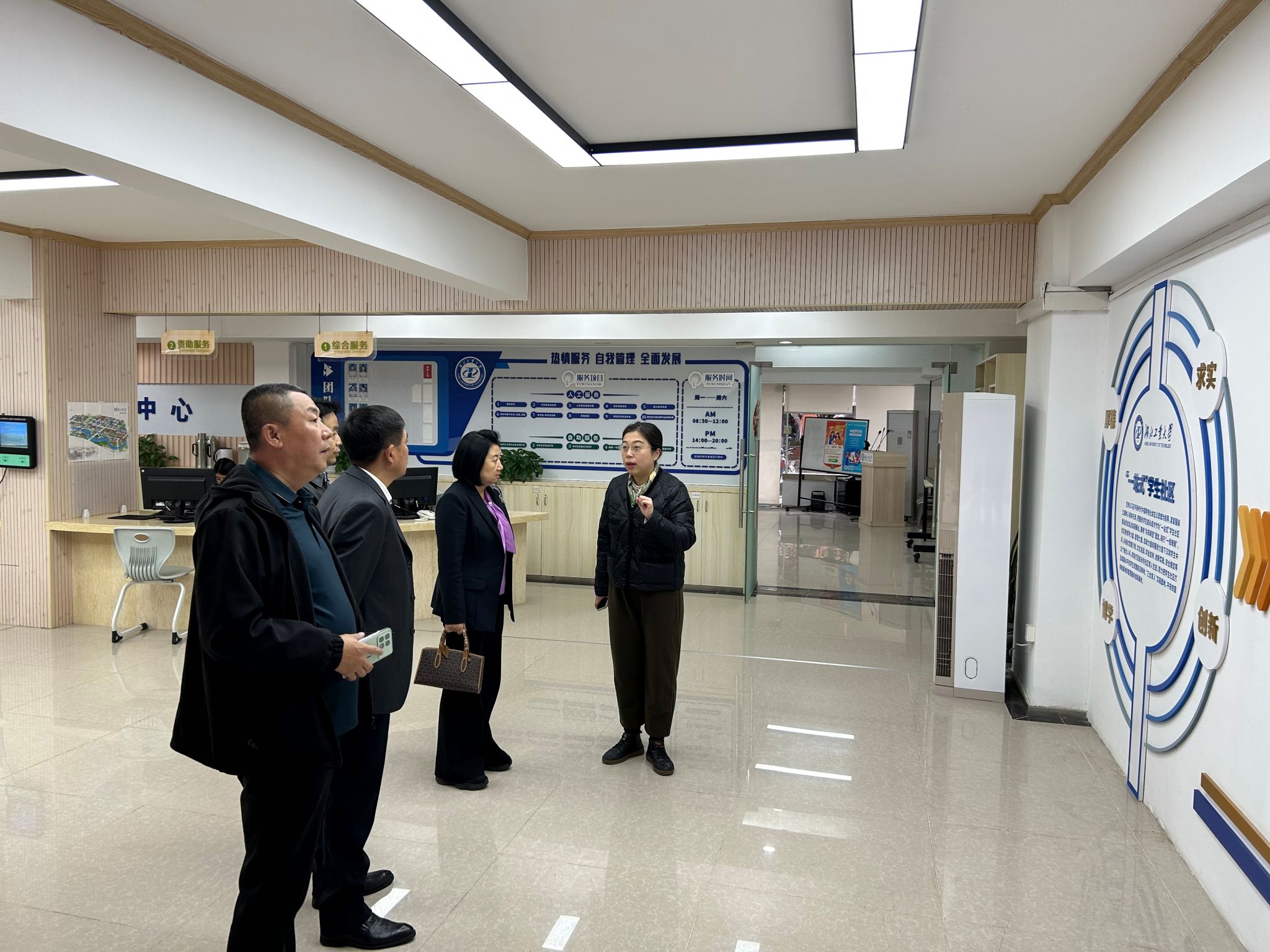 18日下午,江汉大学学工部部长沈博、校园建设处处长罗志峰等一行来校调研“一站式”学生社区建设。