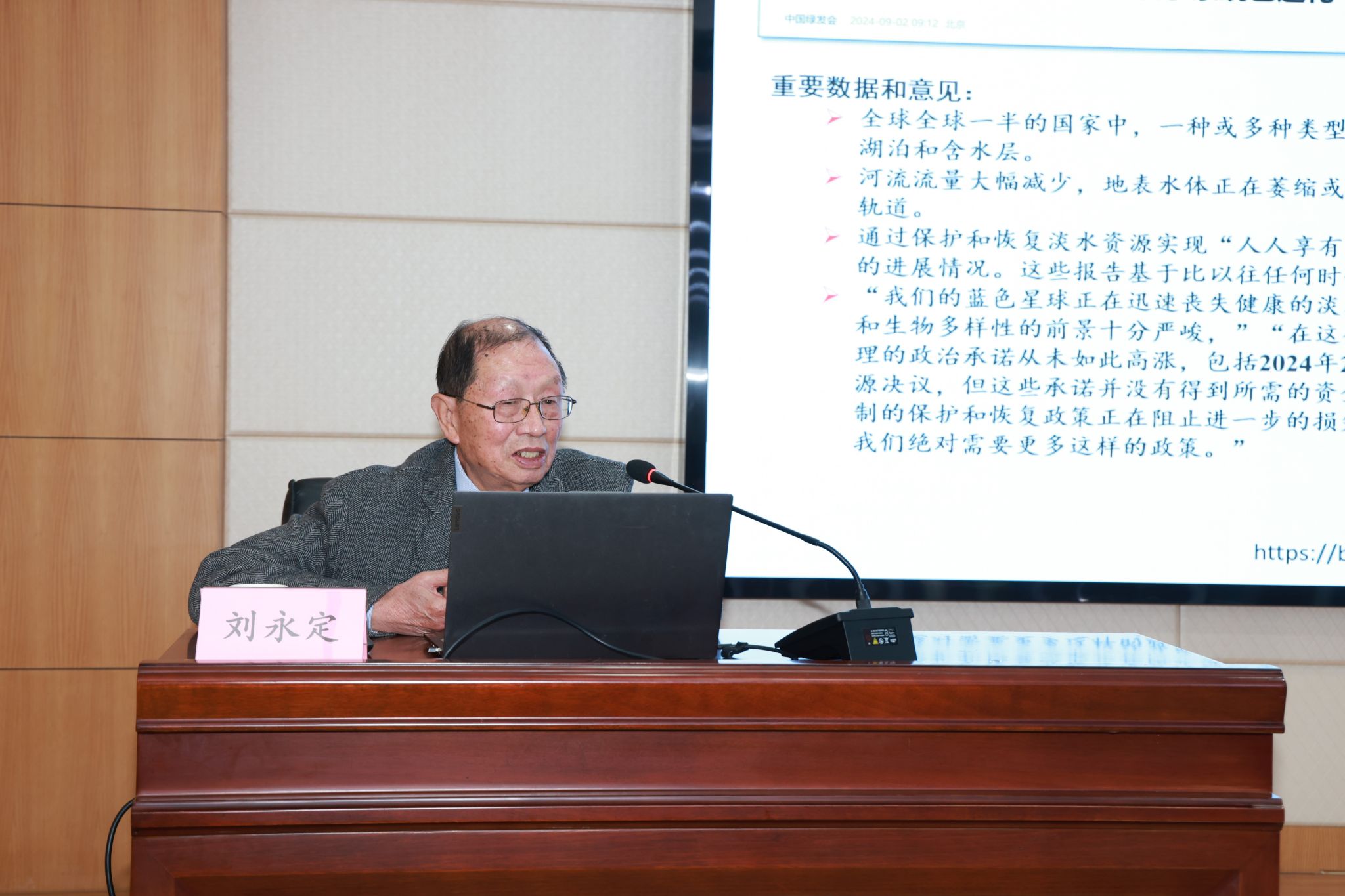 刘永定院士以“河湖生态系统健康的基础和当前面临的重大问题”为题作学术报告。他指出,河湖是有组织的复杂系统,分析和解决河湖生态环境问题需要运用系统思维和方法,考虑河湖生态系统的整体性、多维性和时空性,以建立河湖健康管理体系。