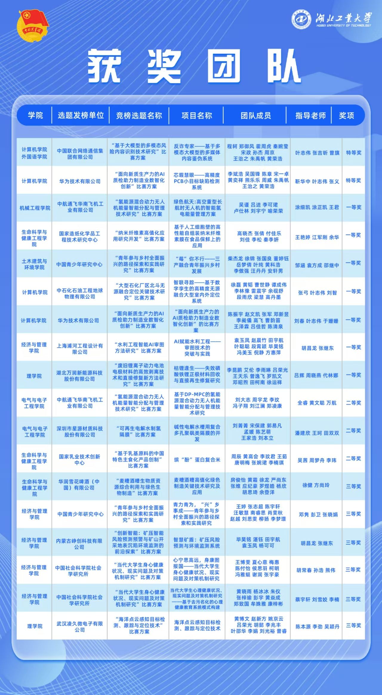 其中,计算机学院、外国语学院《反诈专家——基于多模态大模型的多媒体内容鉴伪系统》、计算机学院《芯瑕慧眼——高精度PCB小目标缺陷检测系统》两个项目获特等奖。计算机学院获一等奖2项,机械学院、生命学院、土建学院、经管学院、理学院分别获一等奖1项。