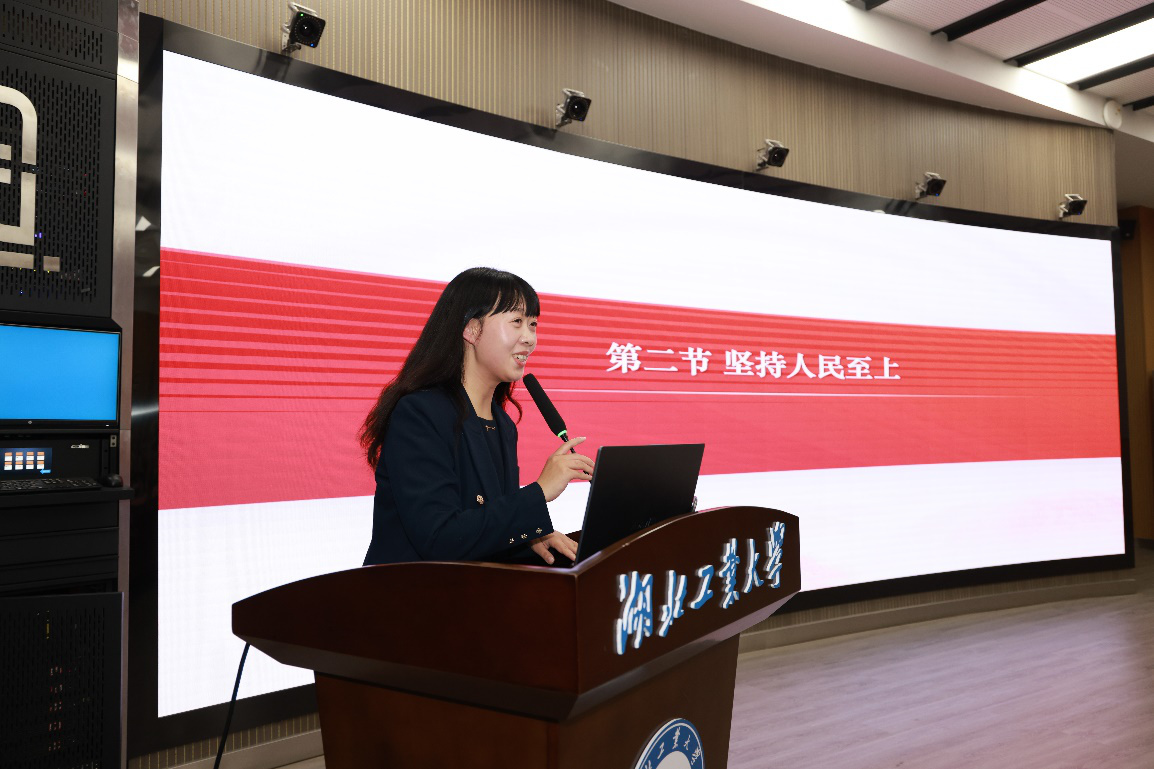 第三届全国高校思政课教学展示二等奖获得者董苾茜以“从消除贫困中读懂人民至上的内涵”为题展开教学示范。