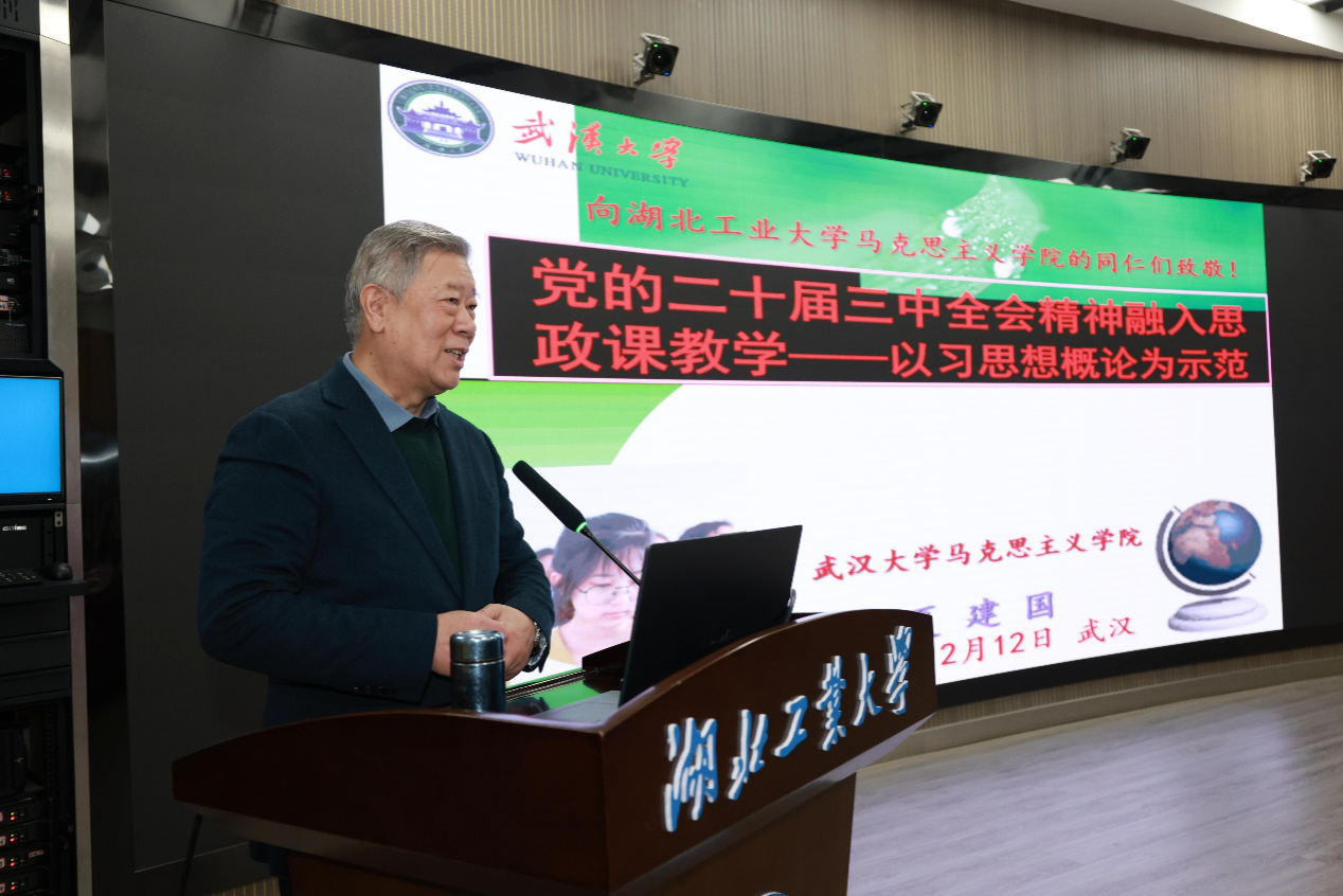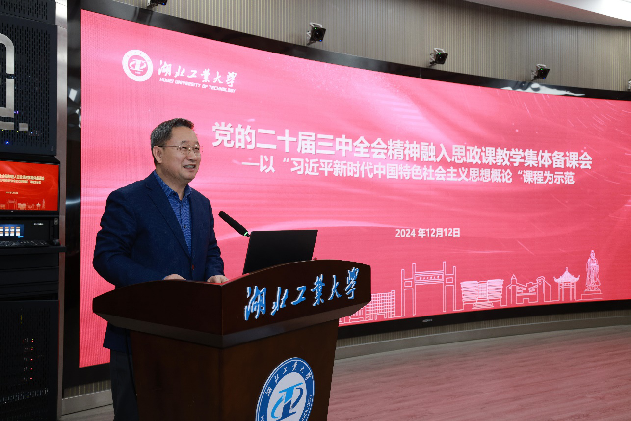 为深入学习贯彻党的二十届三中全会精神,扎实推进全会精神进教材进课堂,12月12日,马克思主义学院在湖北工业大学虚拟仿真思政课体验教学中心举行党的二十届三中全会精神融入思政课教学集体备课会。武汉大学马克思主义学院夏建国教授、武汉工程大学马克思主义学院董苾茜副教授应邀做主题报告和示范教学,校党委书记彭育园出席并作总结讲话。