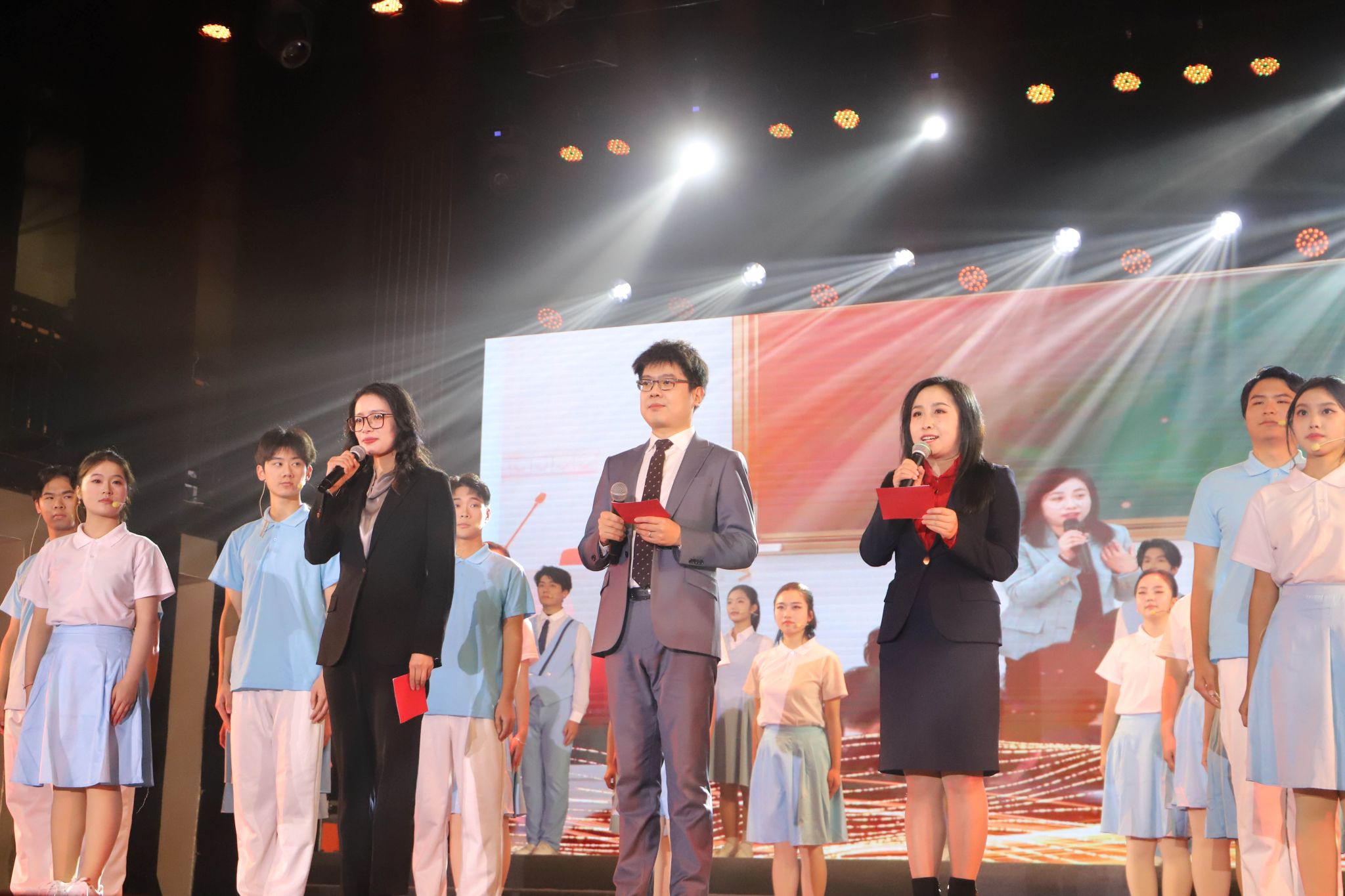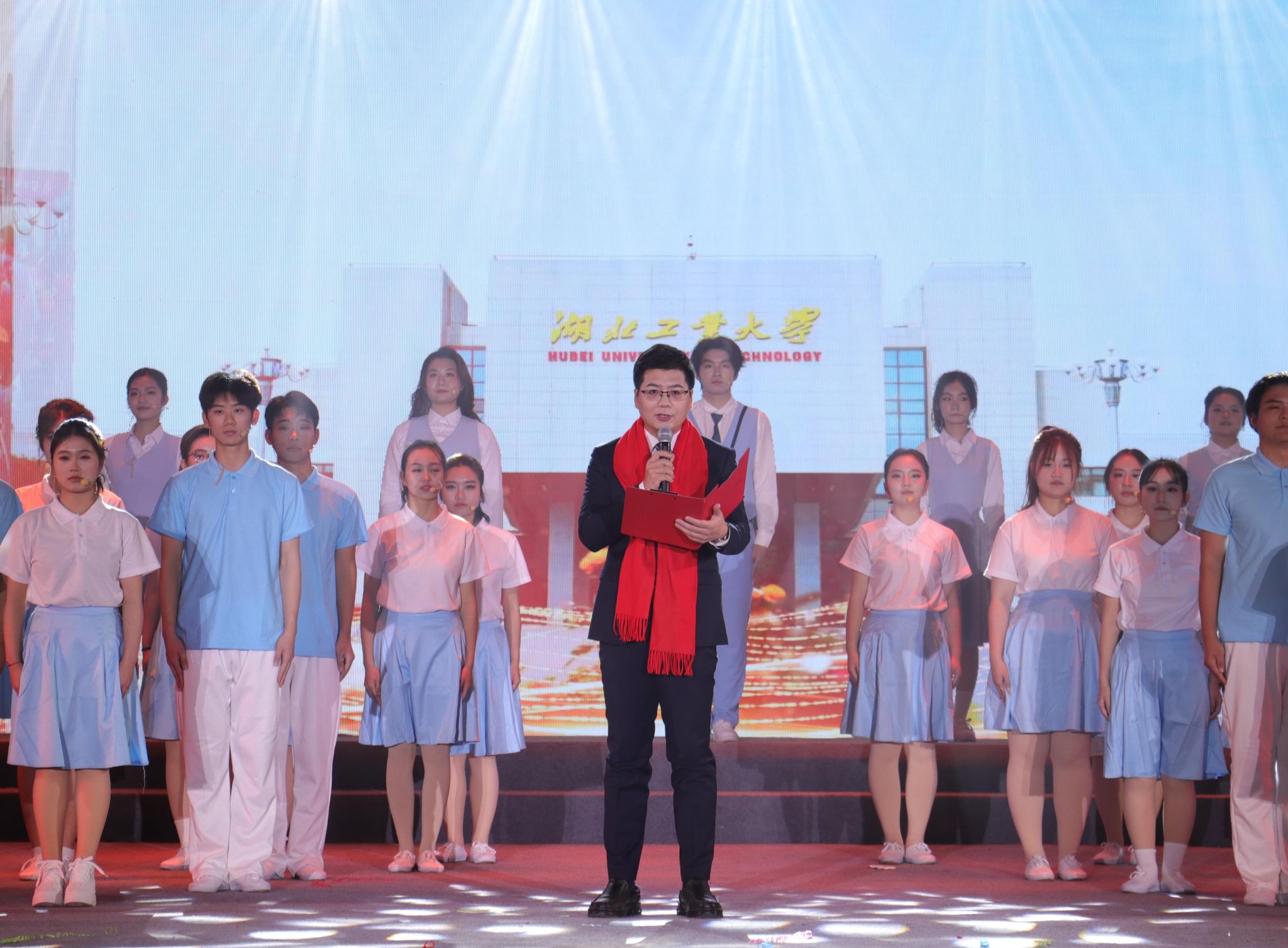 尾声部分,全体校领导上台与在场师生齐唱《明天会更好》,将晚会推向高潮,共同表达对祖国的美好祝福和对学校未来的无限期许,号召全体湖工大人戮力同行、创新突破,为学校事业发展再上台阶贡献力量!